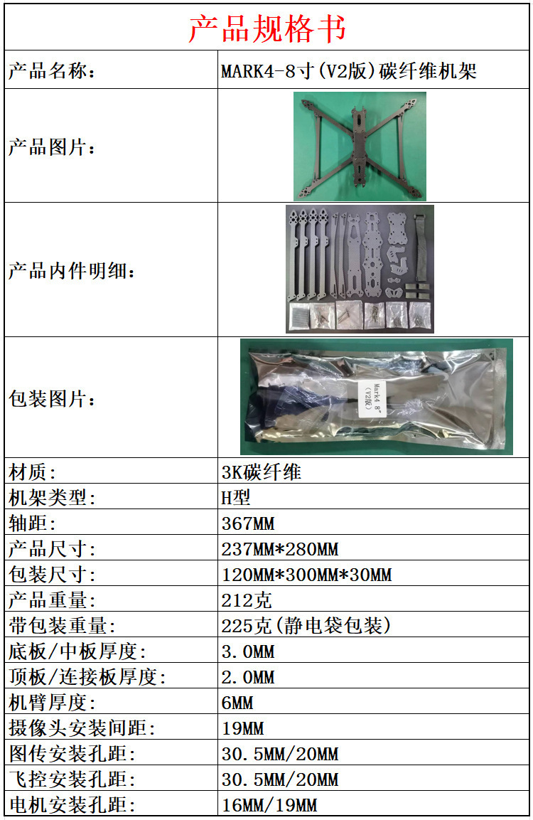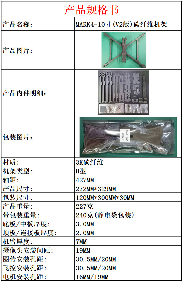 MARK4/MAK4 V2 8/10 "탄소 섬유 UAV 프레임 FPV 교차 캡틴의 내구성