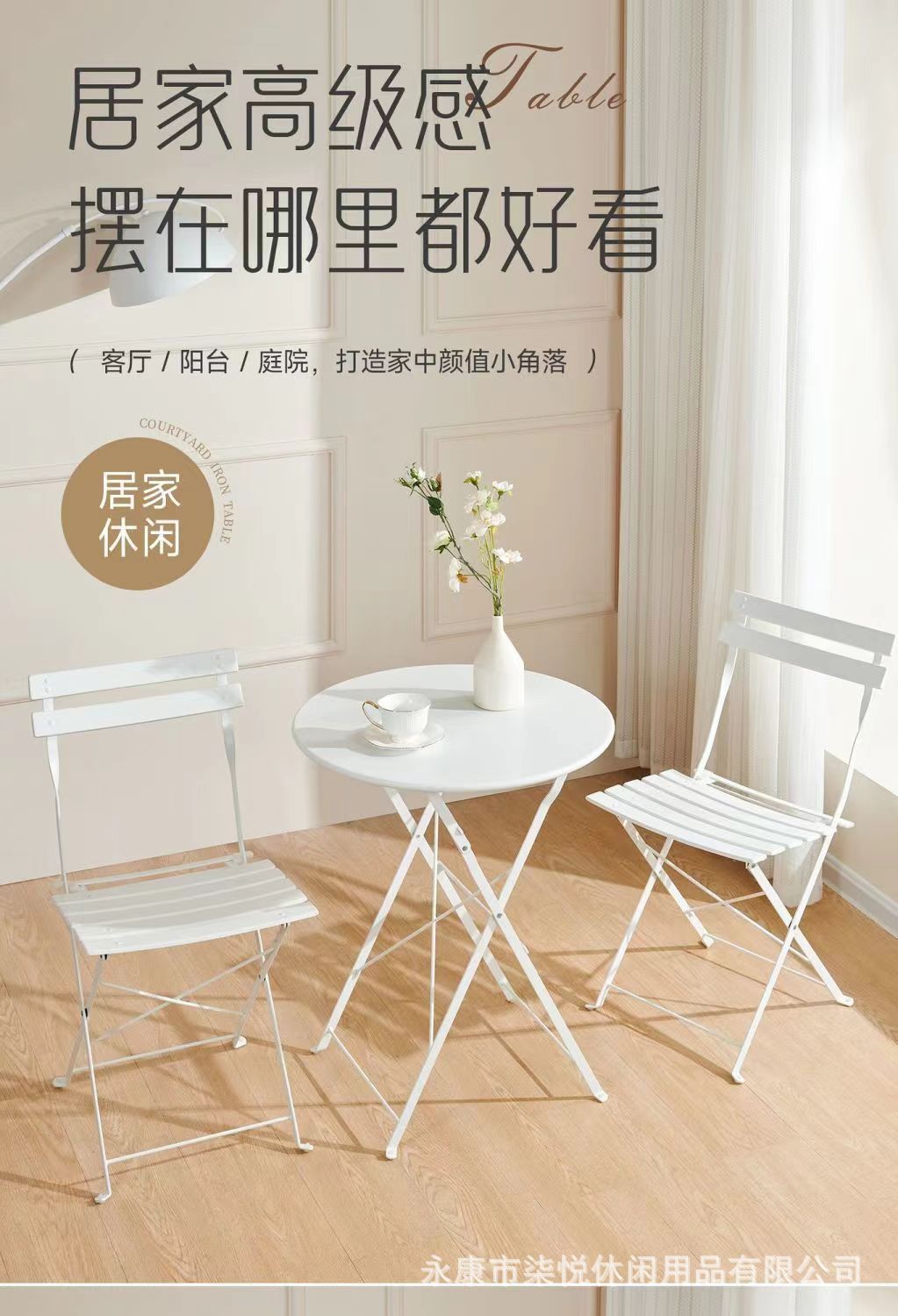 야외 접이식 테이블과 의자 발코니 작은 커피 테이블 레저 테이블과 의자 3 피스 야외 안뜰 방수 창조적 인 단철 세트