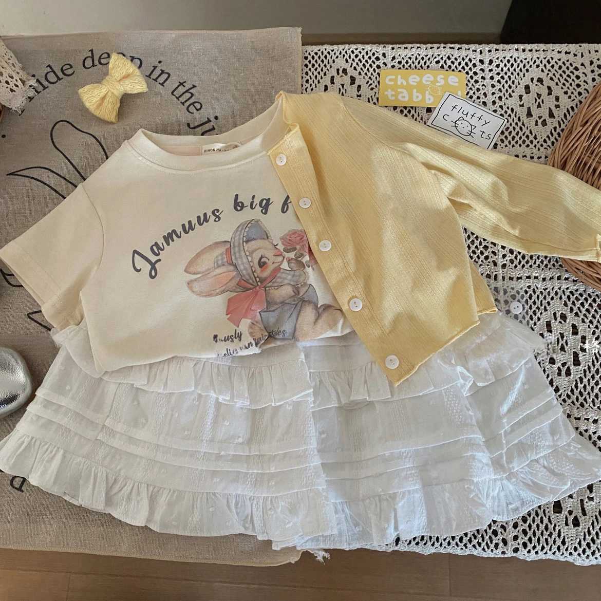 여자 여름 세트 2024 새로운 스타일 한국 스타일 유행 어린이 여름 반팔 아기 꽃 거품 원피스 투피스 세트
