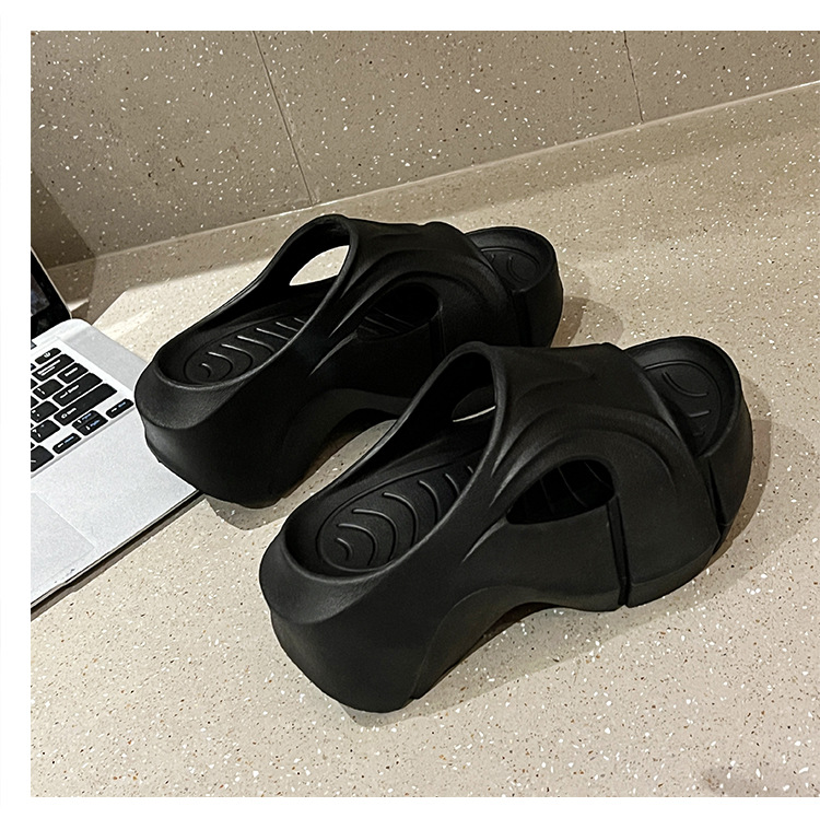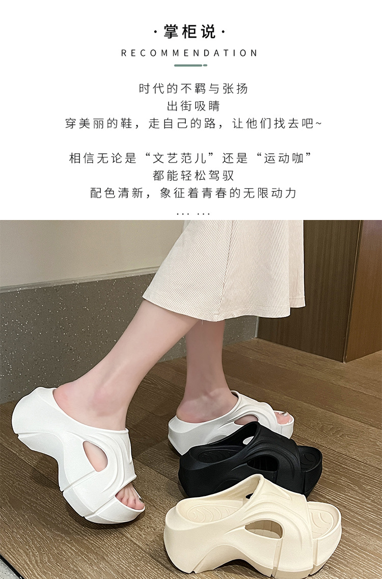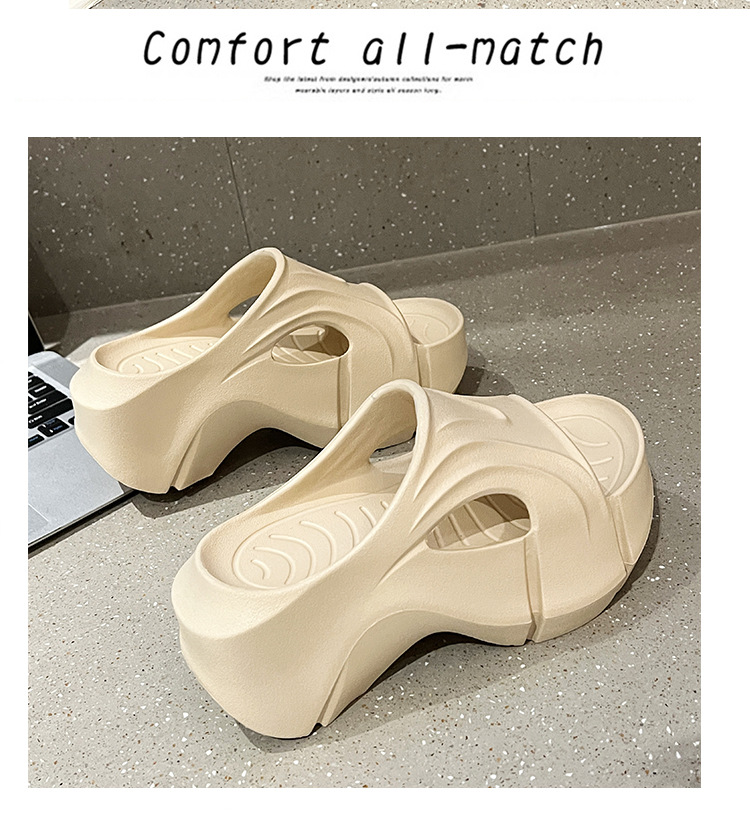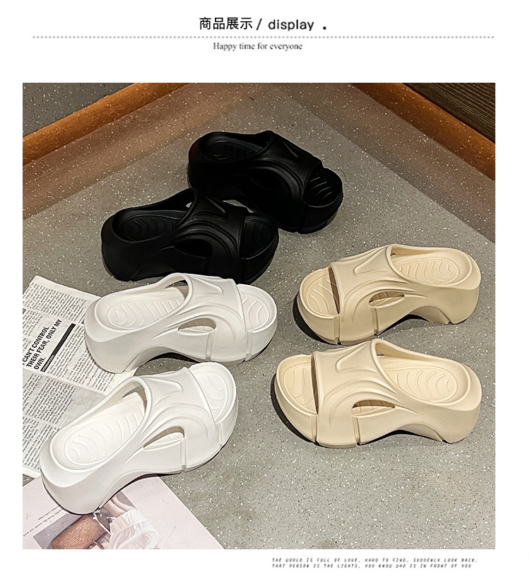 2024 여름 새로운 대외 무역 홈 7CM 두꺼운 슬리퍼 여성용 EVA 솔리드 컬러 하이힐 플랫폼 샌들스토어 가기