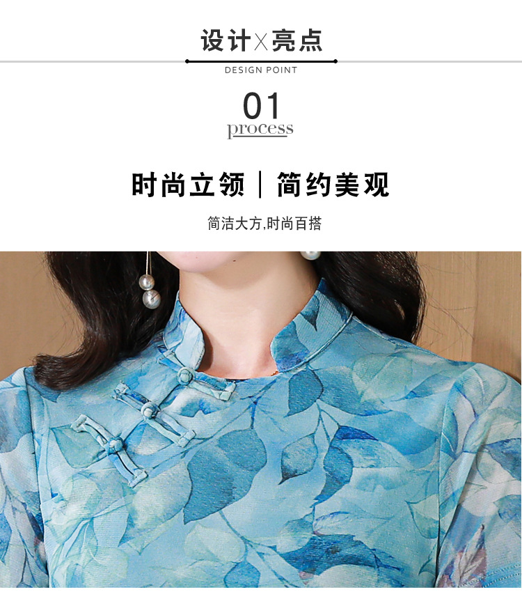 2024 스팟 중국 스타일 국가 스타일 새로운 스타일 메쉬 칼라 인쇄 스티칭 버클 슬림 핏 슬림 핏 올 매치 작은 셔츠 탑스토어 가기