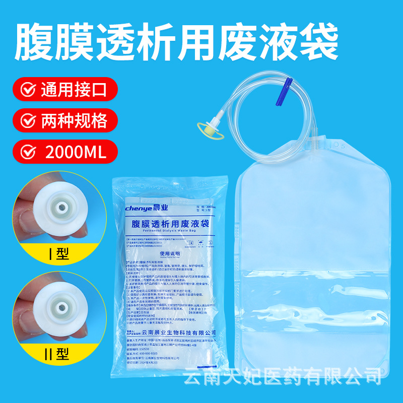 복막 투석 폐 액체 가방 복막 투석 배수 가방 유니버설 인터페이스 독립 포장 2000ml 역류 방지 총검스토어 가기