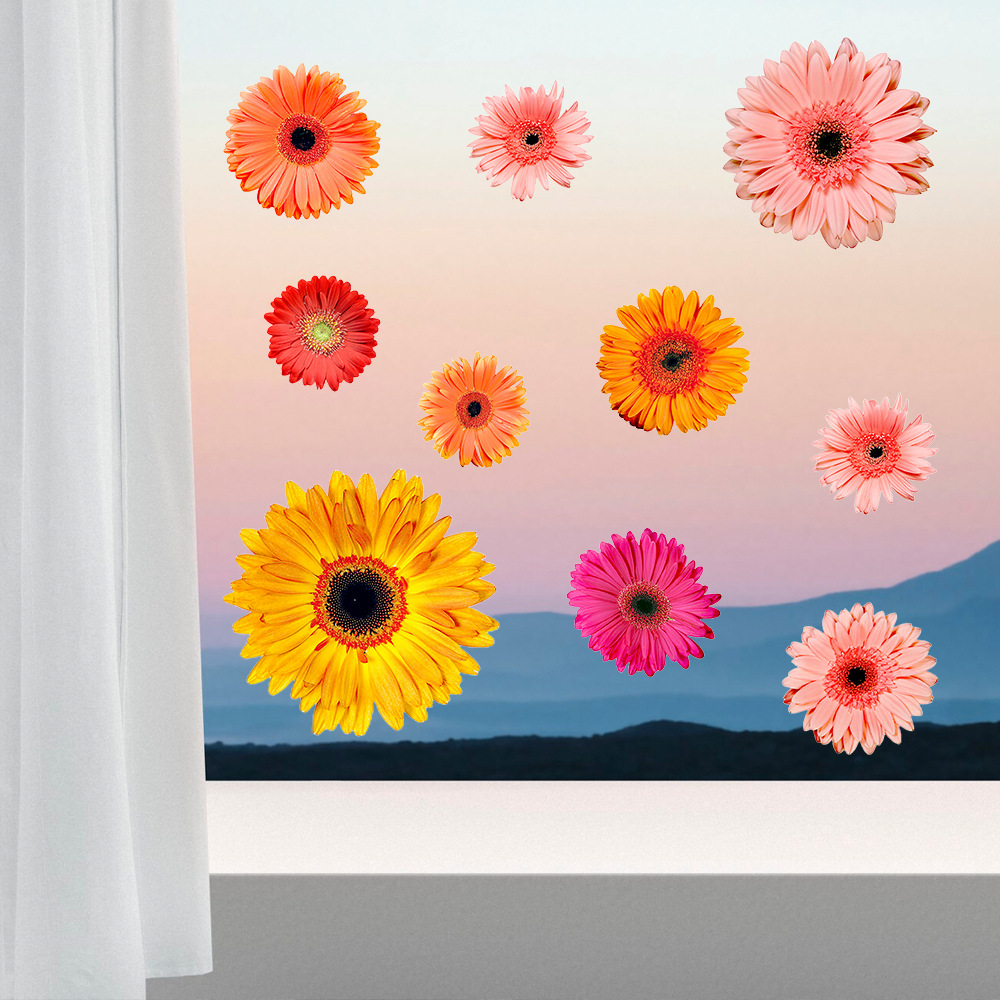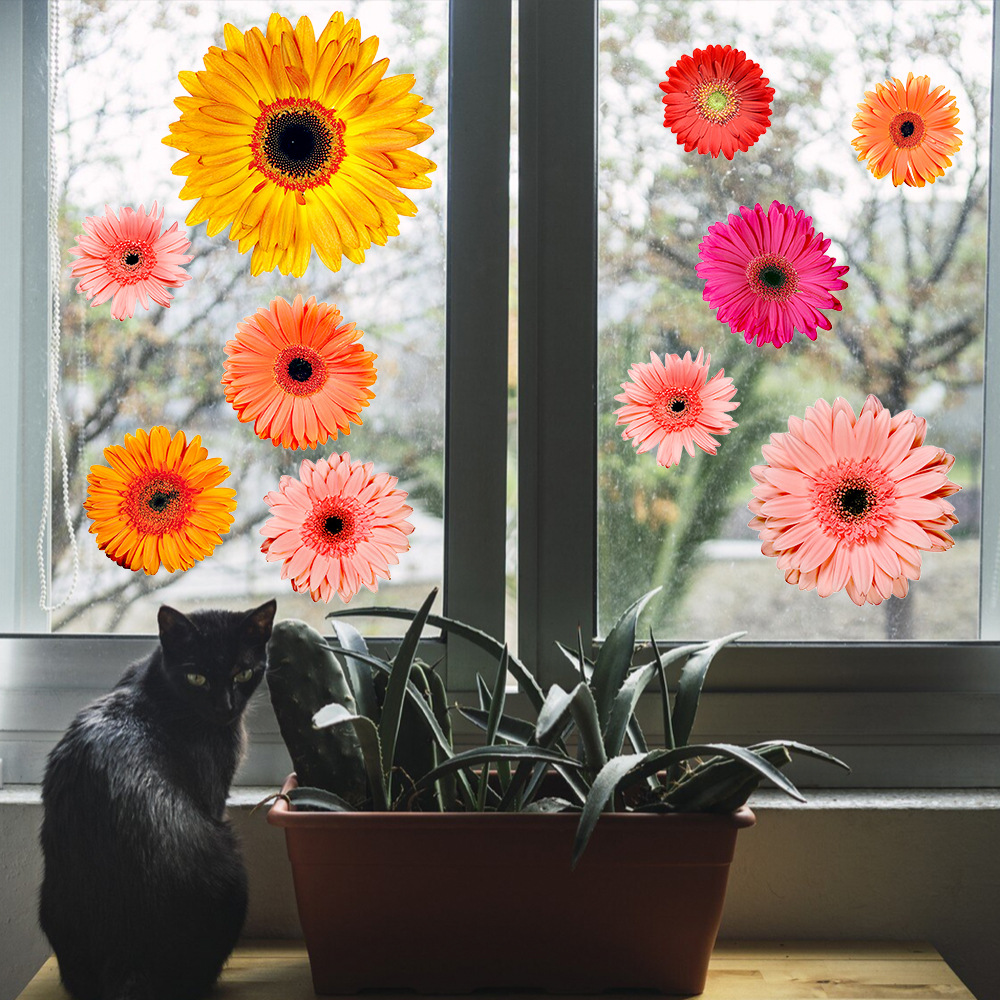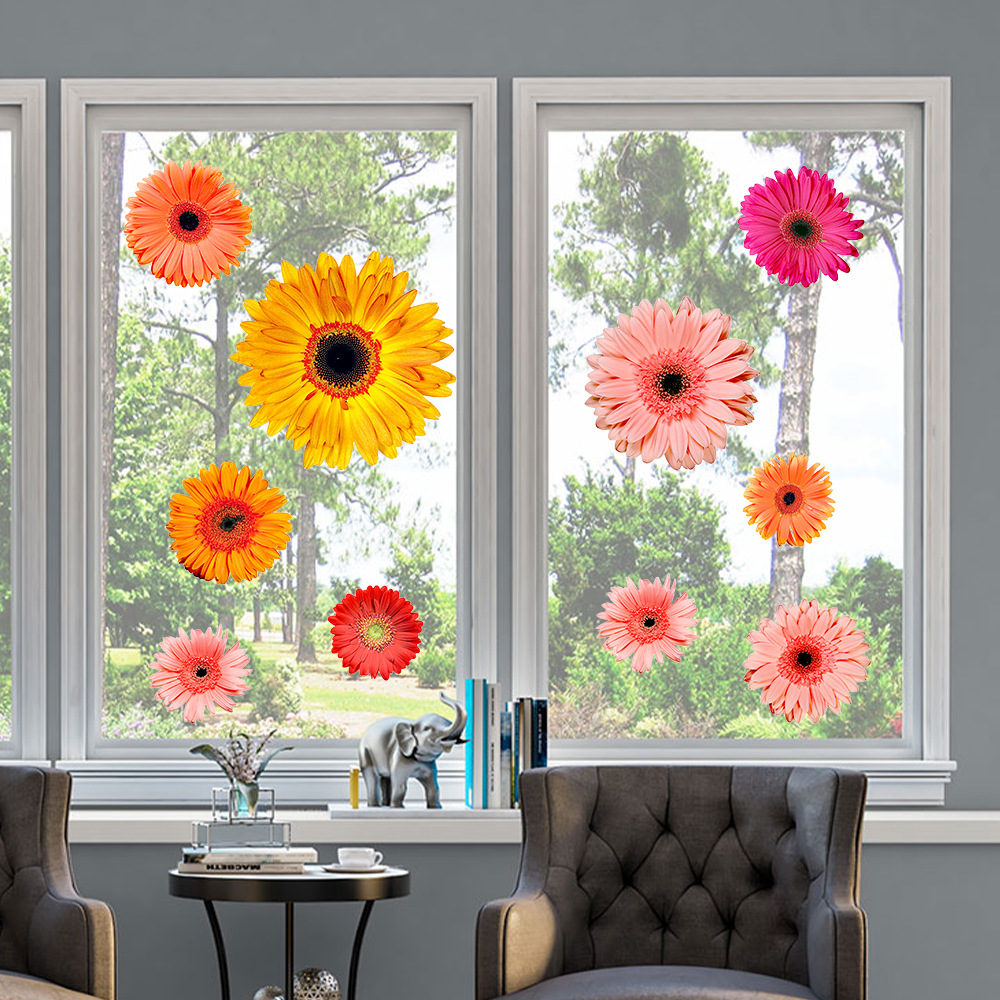 Yiyao DD2393 로맨틱 데이지 스티커 유리 스티커 발코니 레스토랑 정전기 접착제가없는 장식 방수 스티커스토어 가기