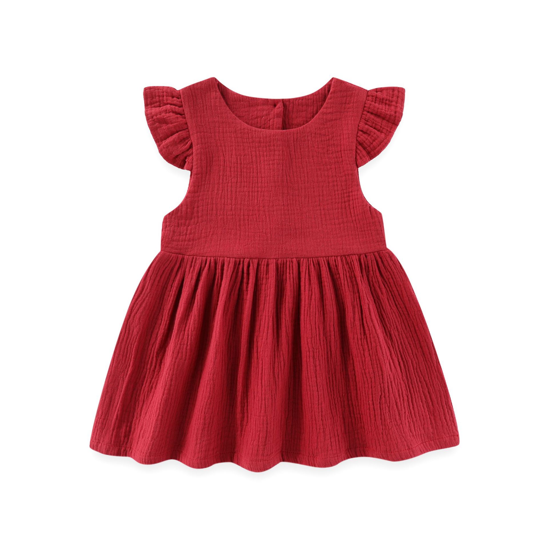 여자 코튼 리넨 플라잉 슬리브 원피스 유아면 린넨 대나무 통기성 공주 스커트 대외 무역 아마존 폭발 어린이 치마