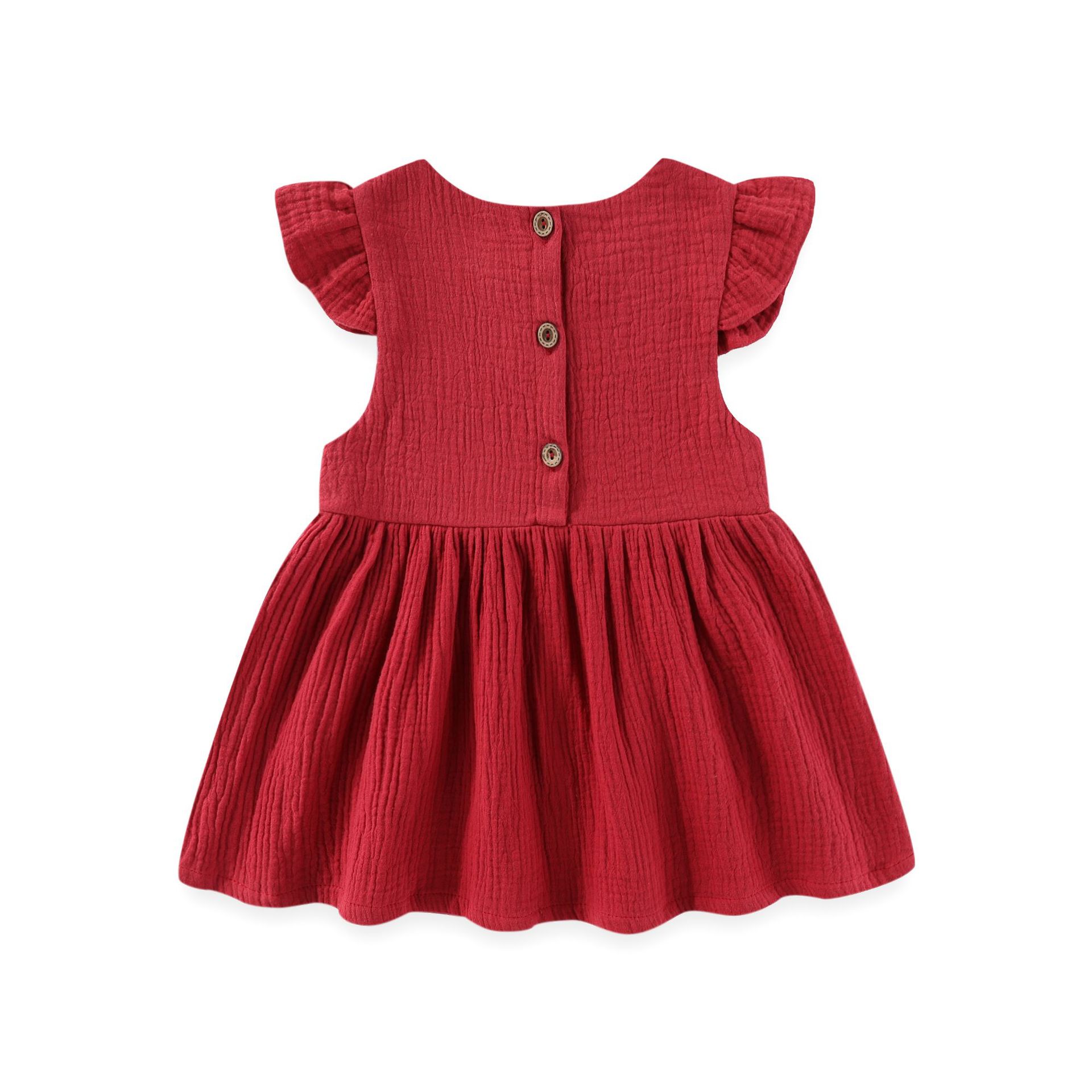 여자 코튼 리넨 플라잉 슬리브 원피스 유아면 린넨 대나무 통기성 공주 스커트 대외 무역 아마존 폭발 어린이 치마스토어 가기