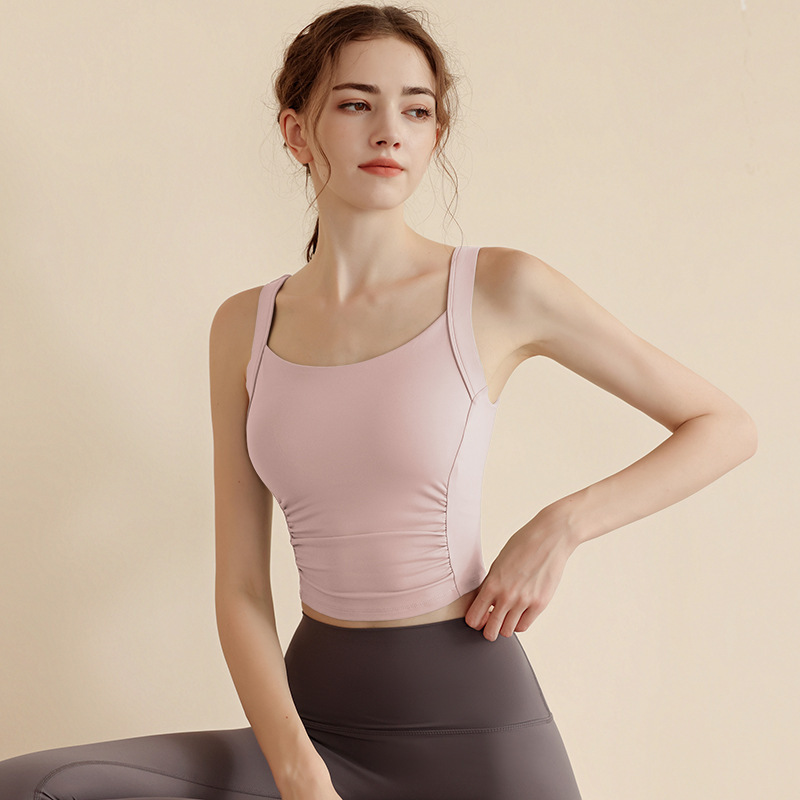 새로운 주름 푸시 업 스포츠 속옷 통기성 탄성 충격 방지 요가 브래지어 러닝 피트니스 외부 스포츠 조끼