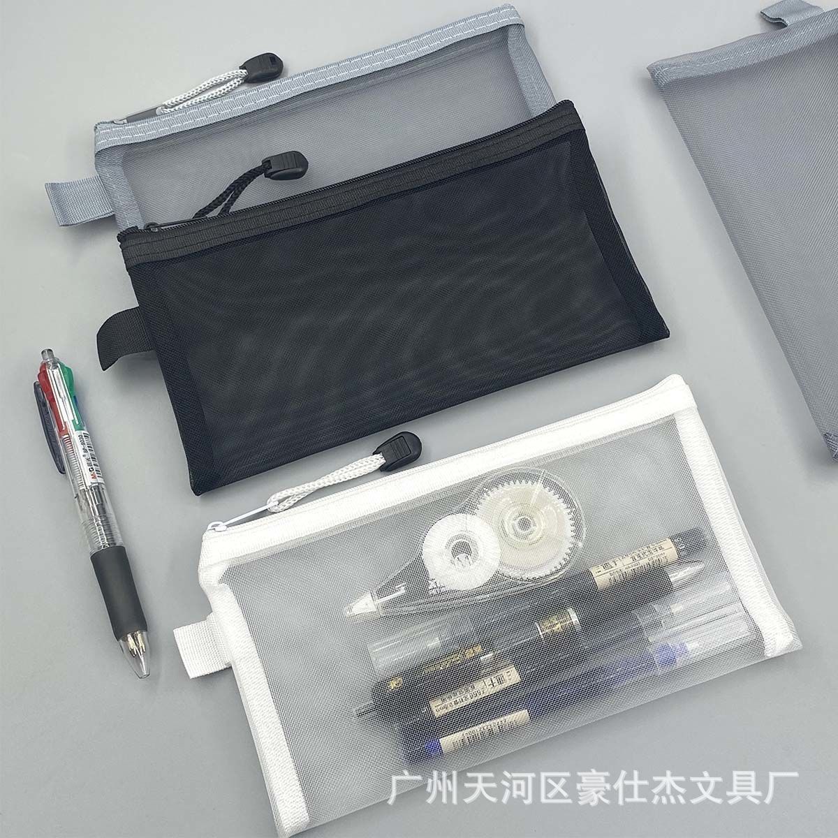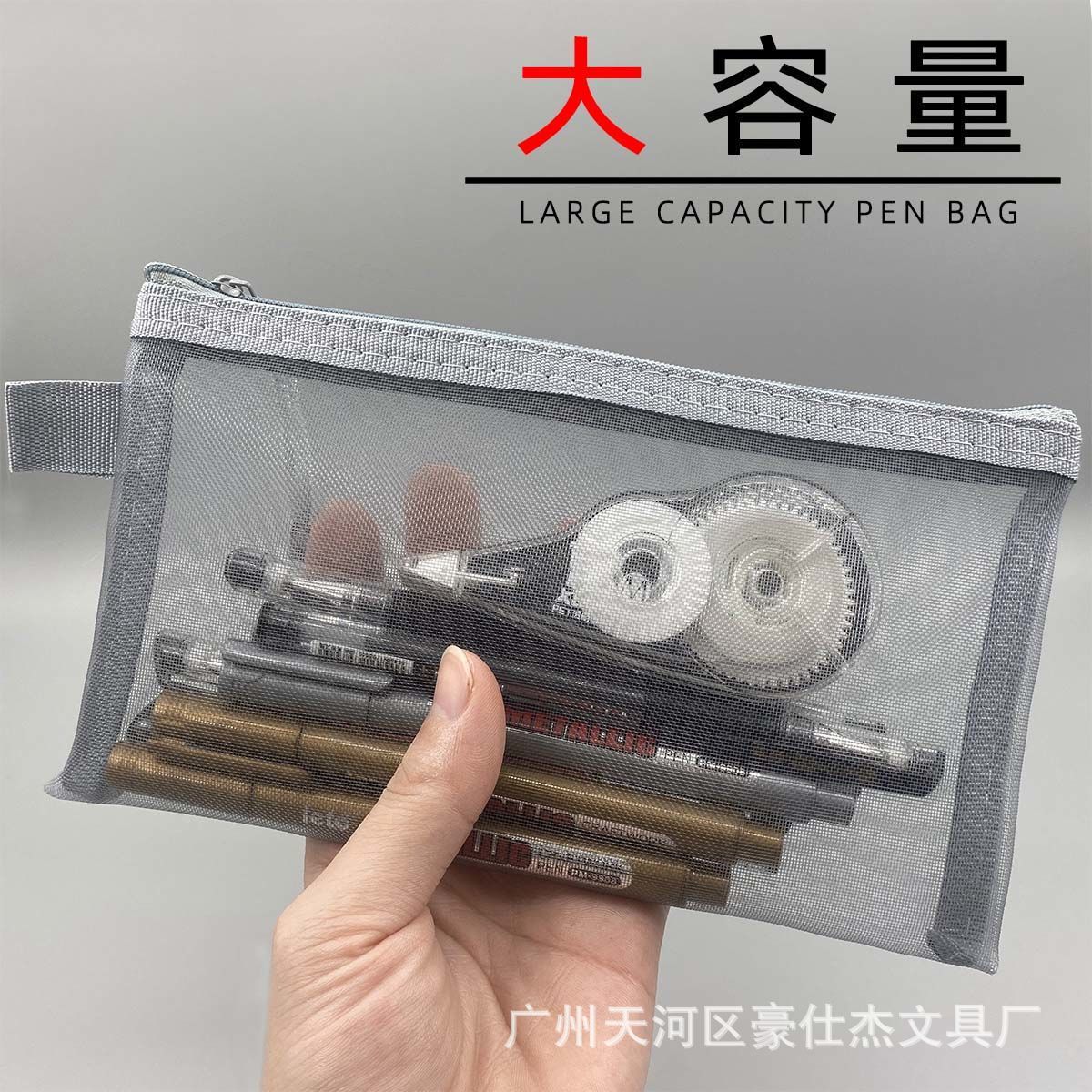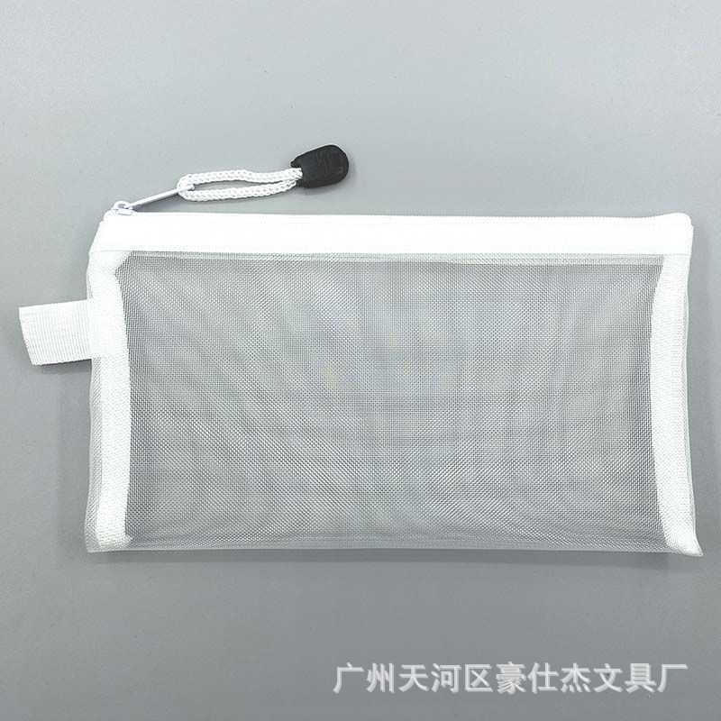 투명한 간단한 메쉬 연필 가방 학생 시험을위한 대용량 화장품 보관 가방 휴대용 지퍼 연필 가방