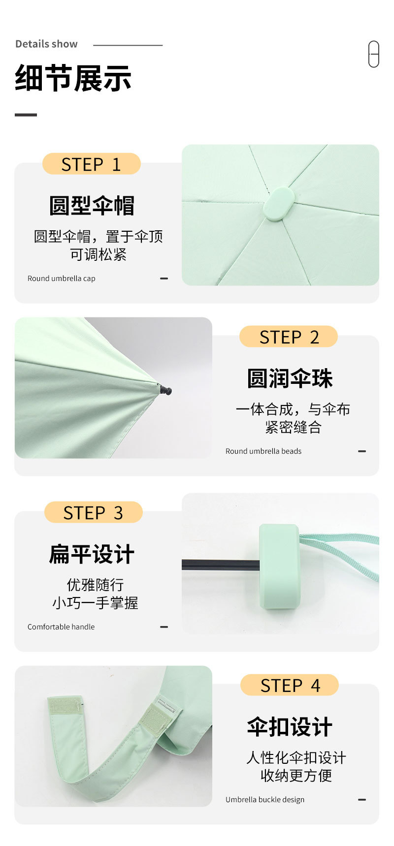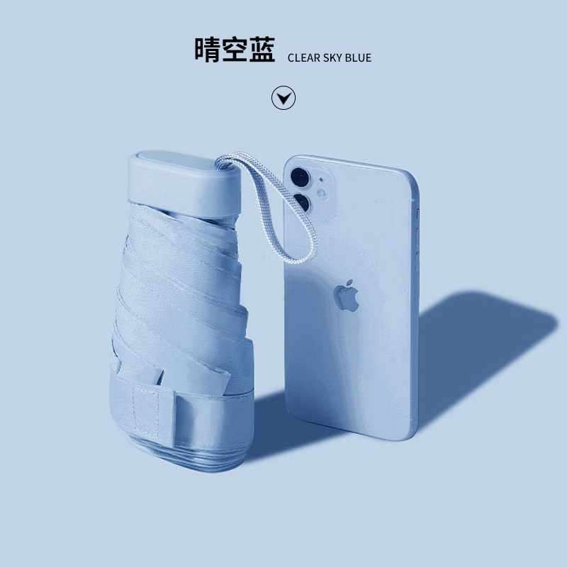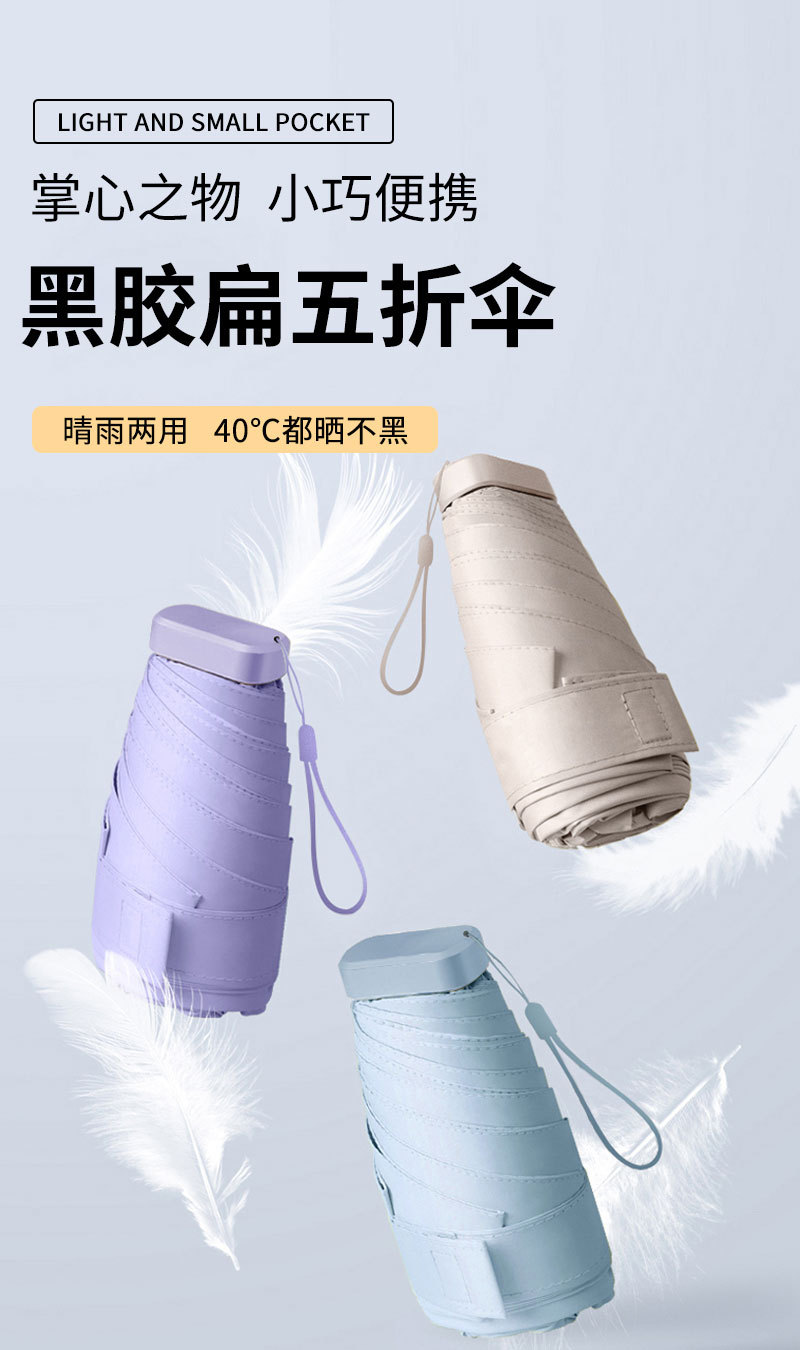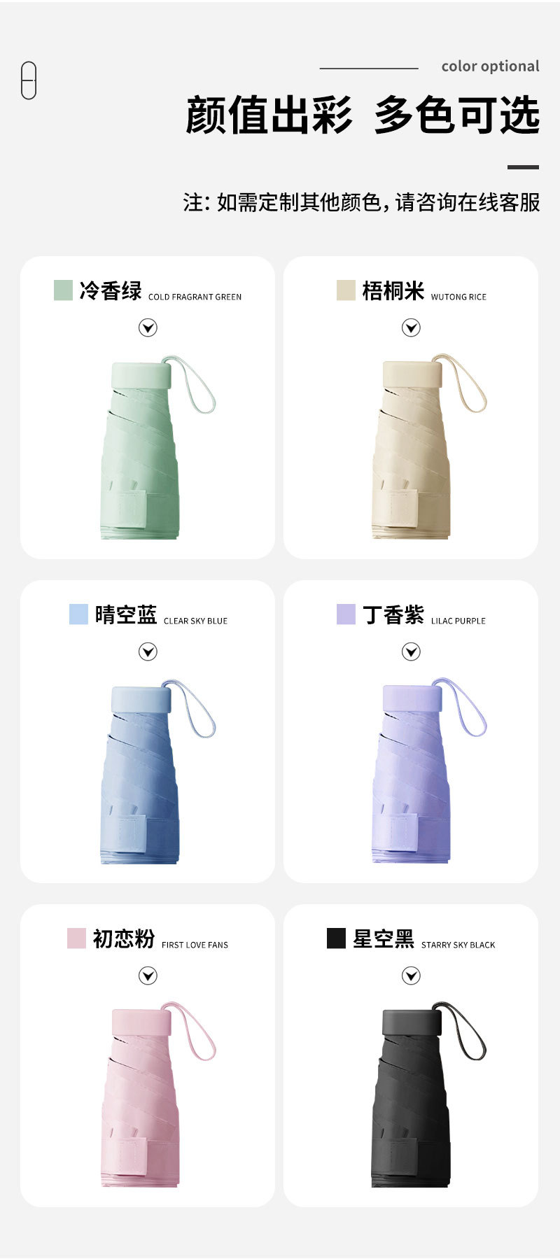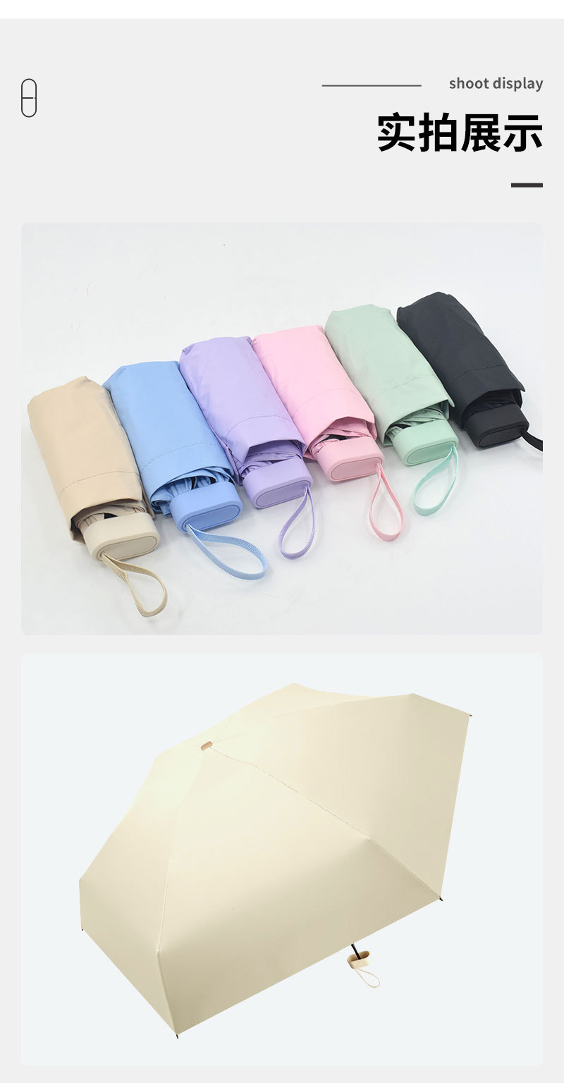 새로운 솔리드 컬러 6 뼈 플랫 5 배 우산 UV 보호 태양 우산 미니 경량 그늘 포켓 우산 캡슐 우산스토어 가기