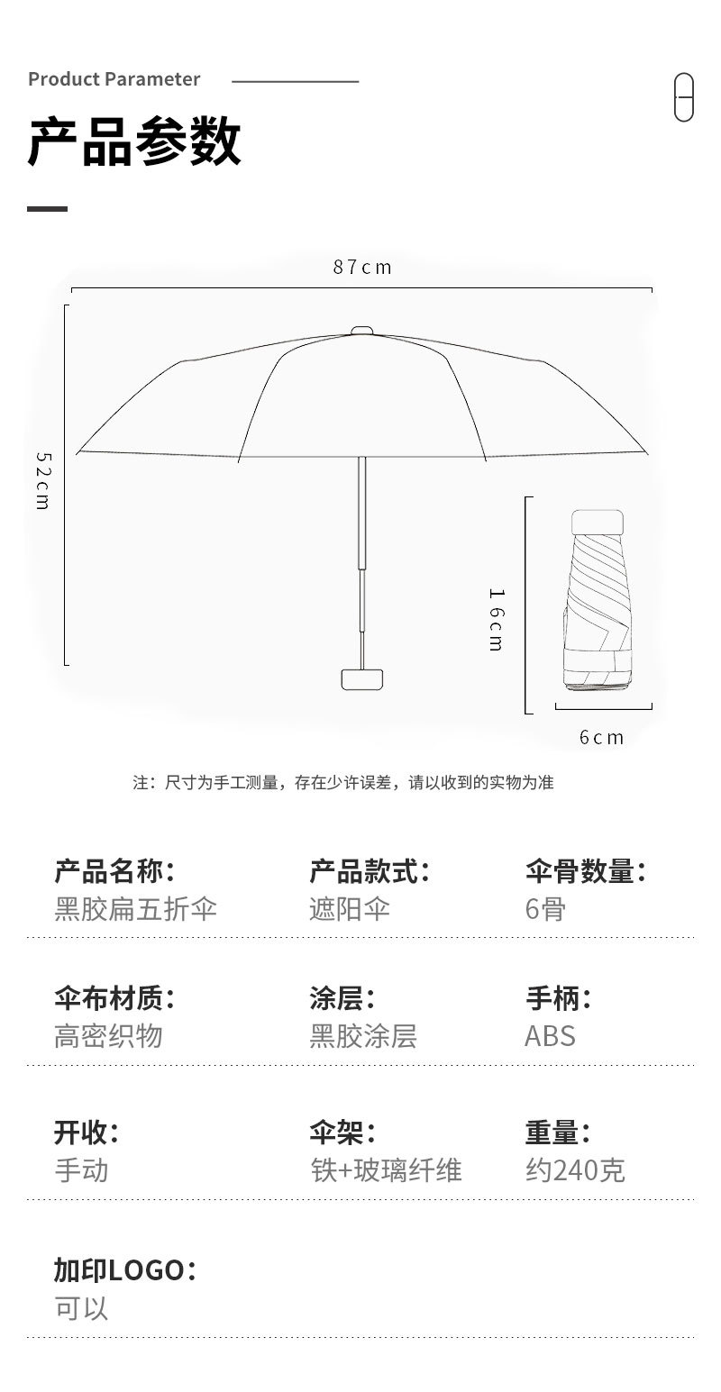 새로운 솔리드 컬러 6 뼈 플랫 5 배 우산 UV 보호 태양 우산 미니 경량 그늘 포켓 우산 캡슐 우산