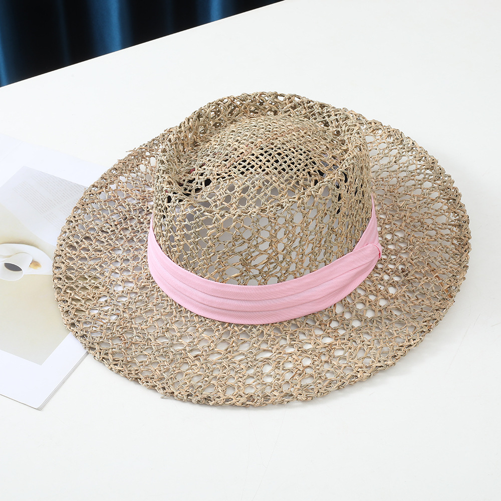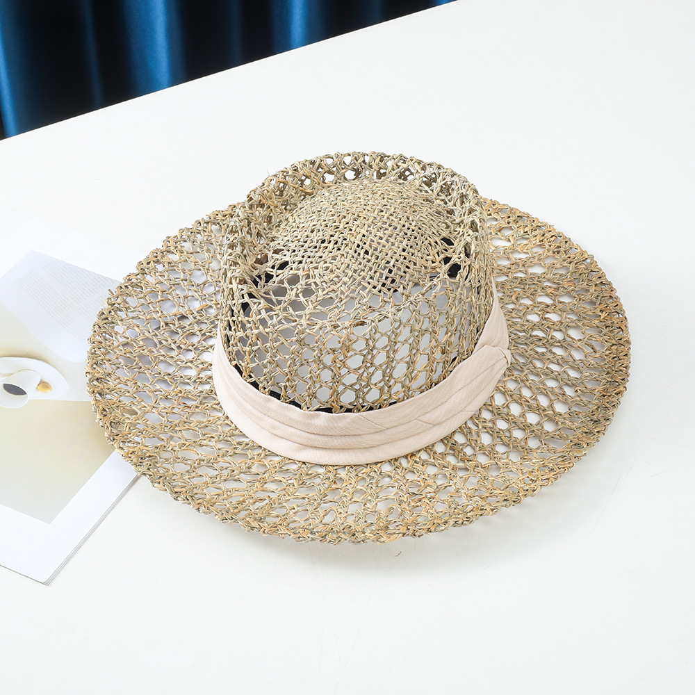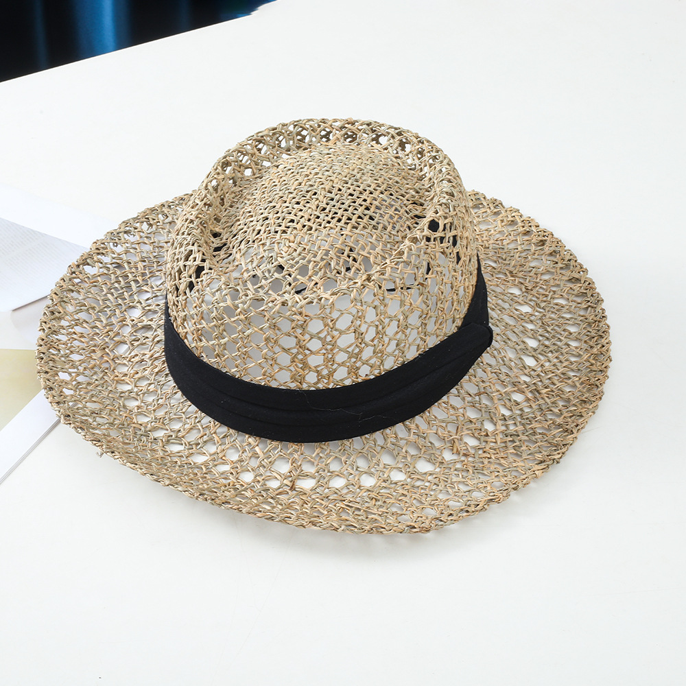 유럽과 미국의 여름 태양 모자 여성의 중공 선 스크린 밀짚 모자 해변 휴가 해변 모자 인터넷 인기있는 컨캐브 탑 밀짚 모자