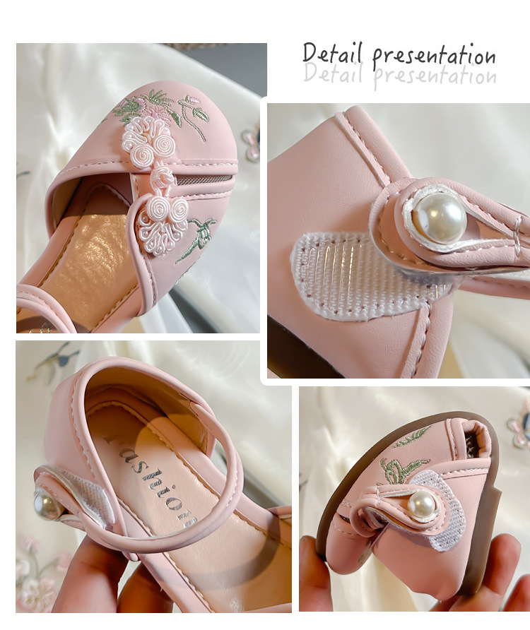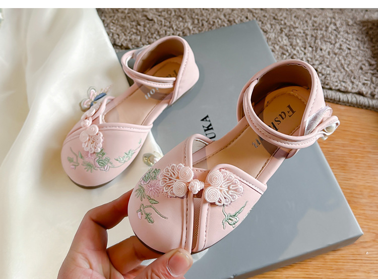 소녀 Guofeng 작은 가죽 신발 2024 여름 새로운 메쉬 할로우 세미 샌들 유행 중소 어린이 공주 신발스토어 가기