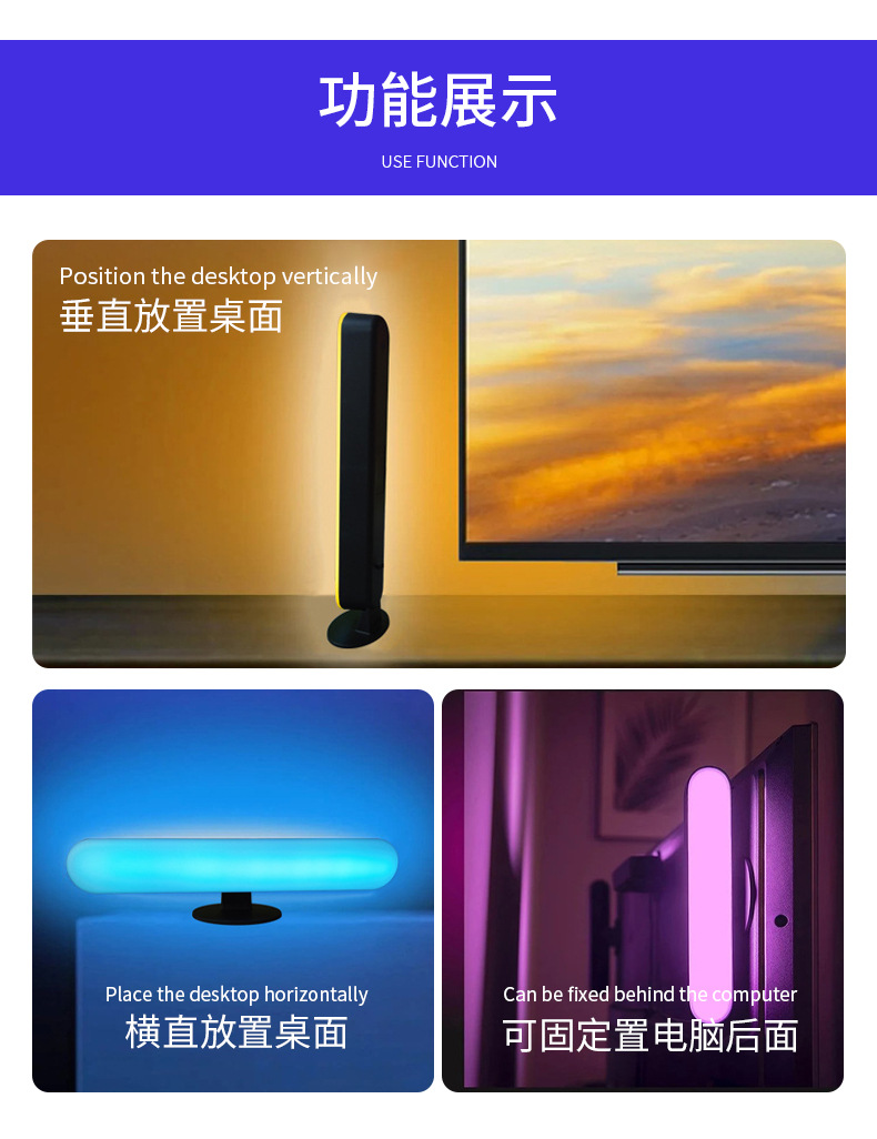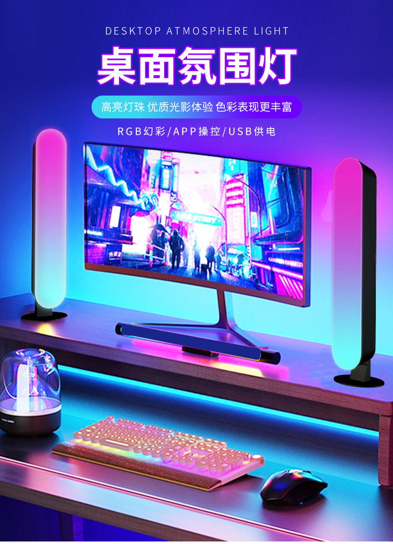 데스크탑 입체 분위기 조명 RGB 심포니 게임 픽업 리듬 분위기 조명 Bluetooth 스마트 원격 제어 분위기 조명