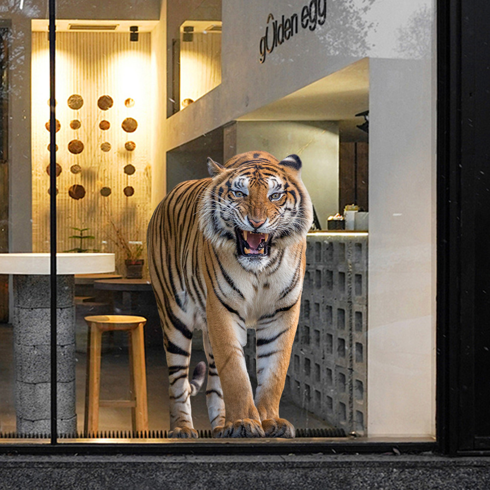 Yiyao DD3621 국경 호랑이 유리 스티커 레스토랑 발코니 분위기 장식 창 슬라이딩 도어 정전기 스티커스토어 가기