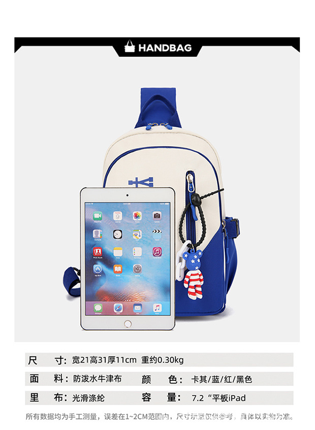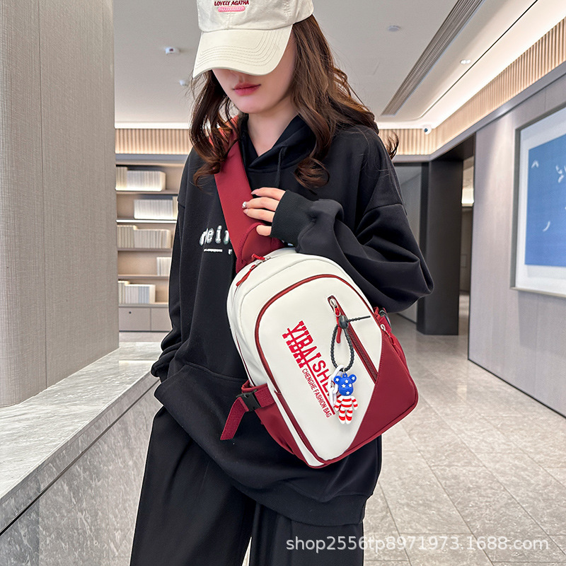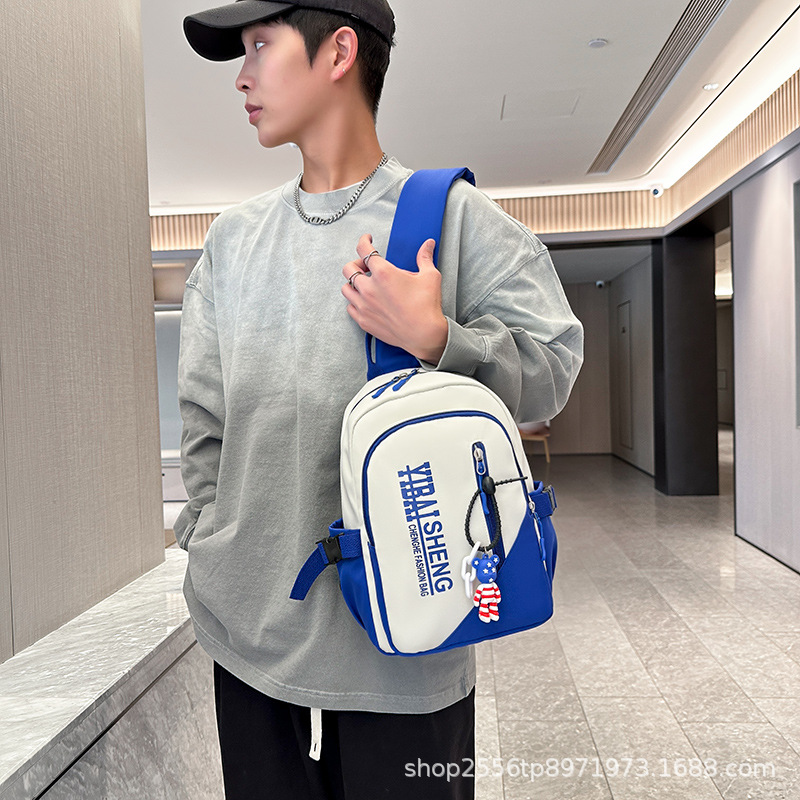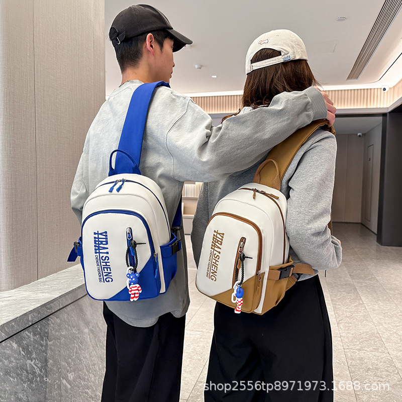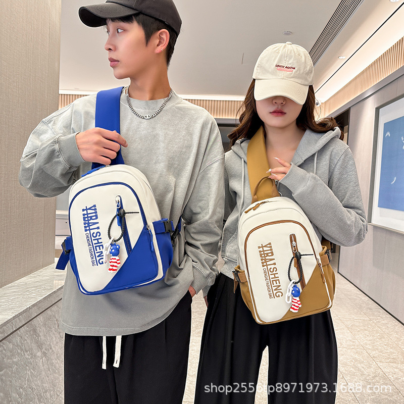 새로운 콘트라스트 컬러 가슴 가방 Ins 캐주얼 대용량 여행 작은 배낭 남성 일본 스타일 툴링 스포츠 크로스 바디 백
