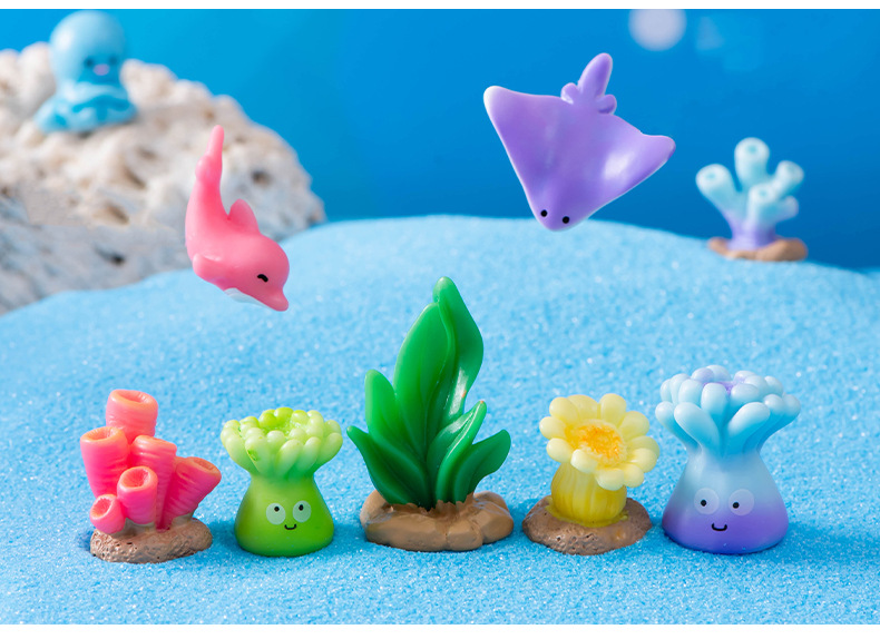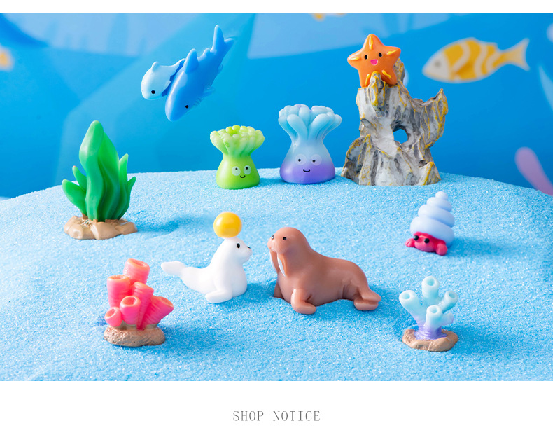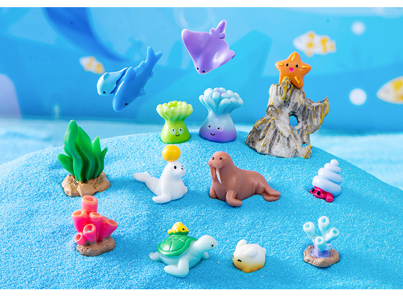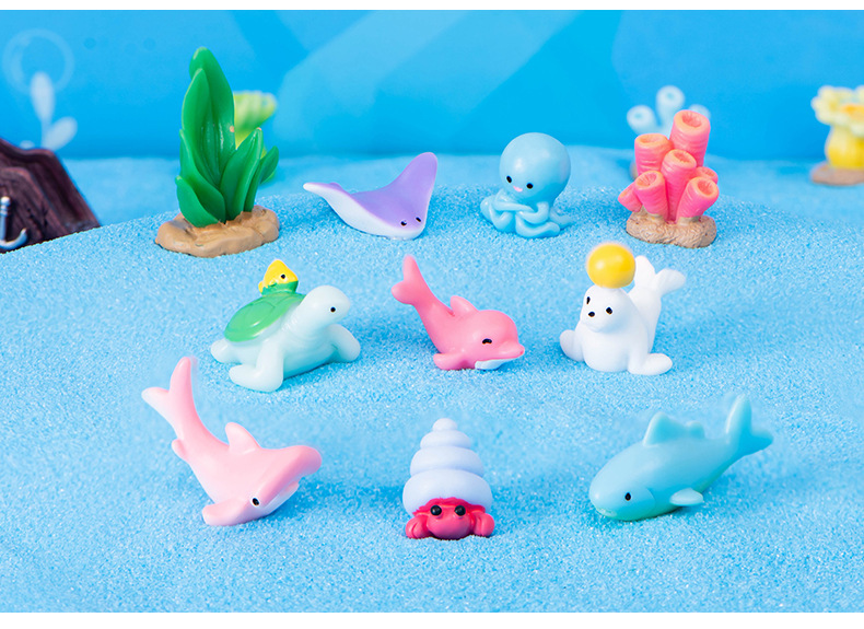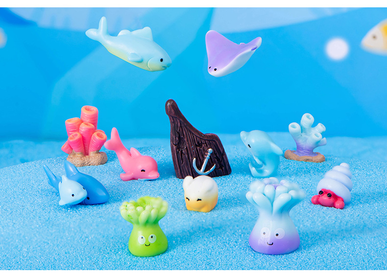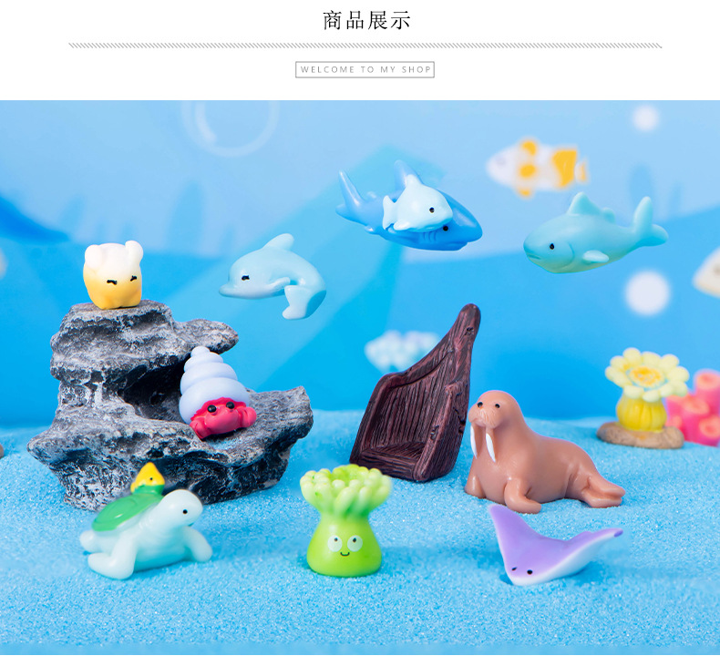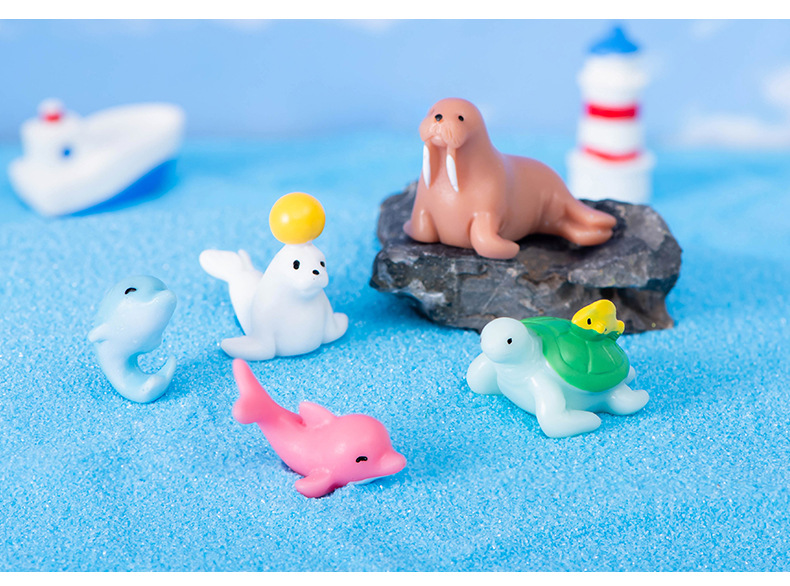 해양 동물 돌고래 물개 바다 사자 거북이 문어 상어 산호 수지 공예 물고기 탱크 조경 작은 장식품스토어 가기