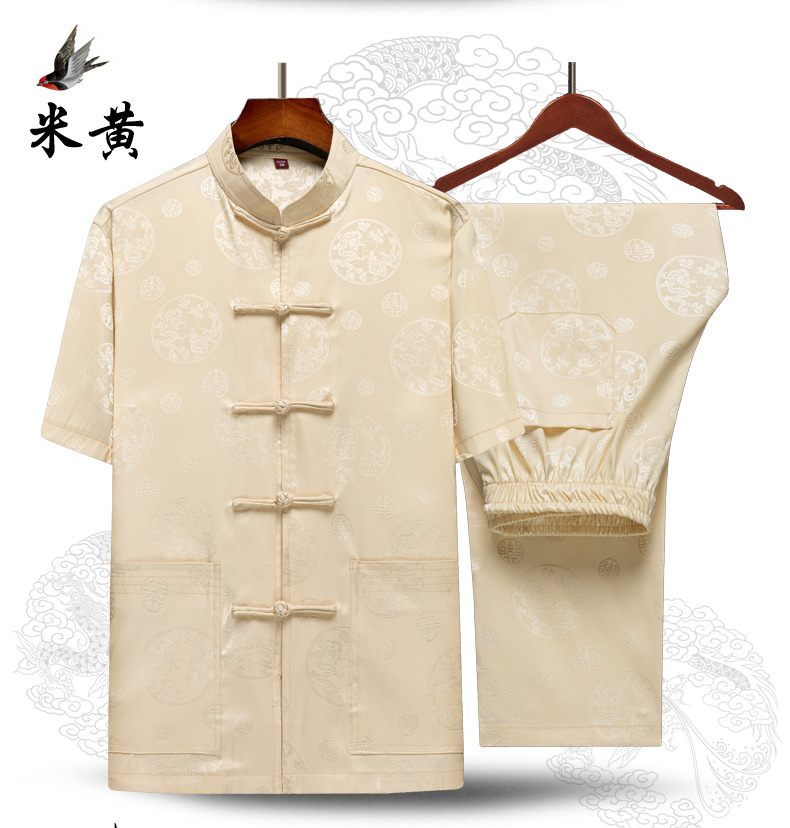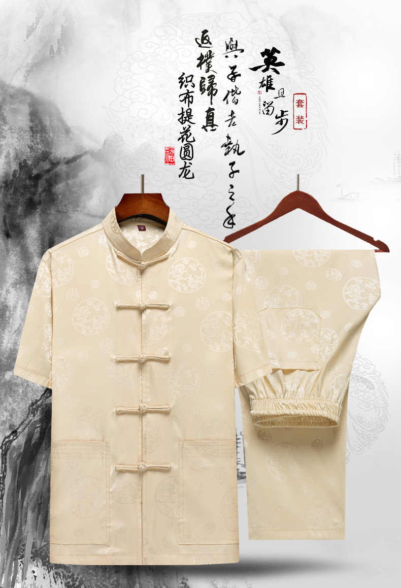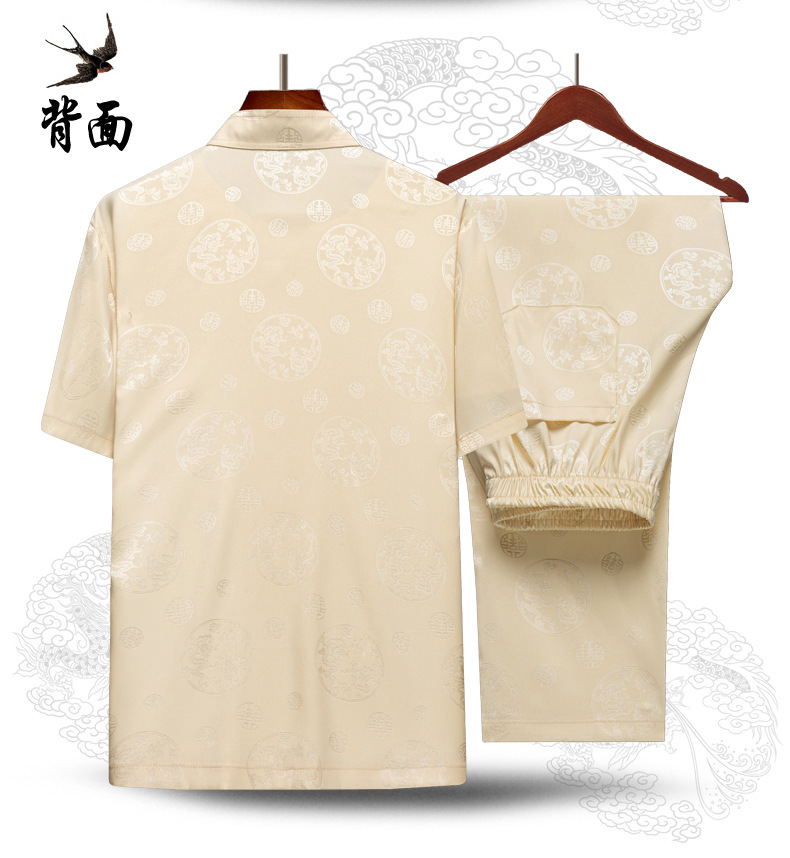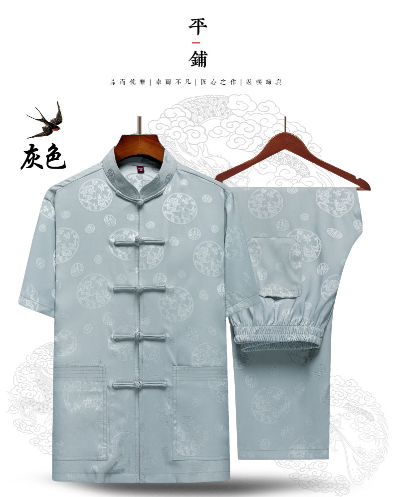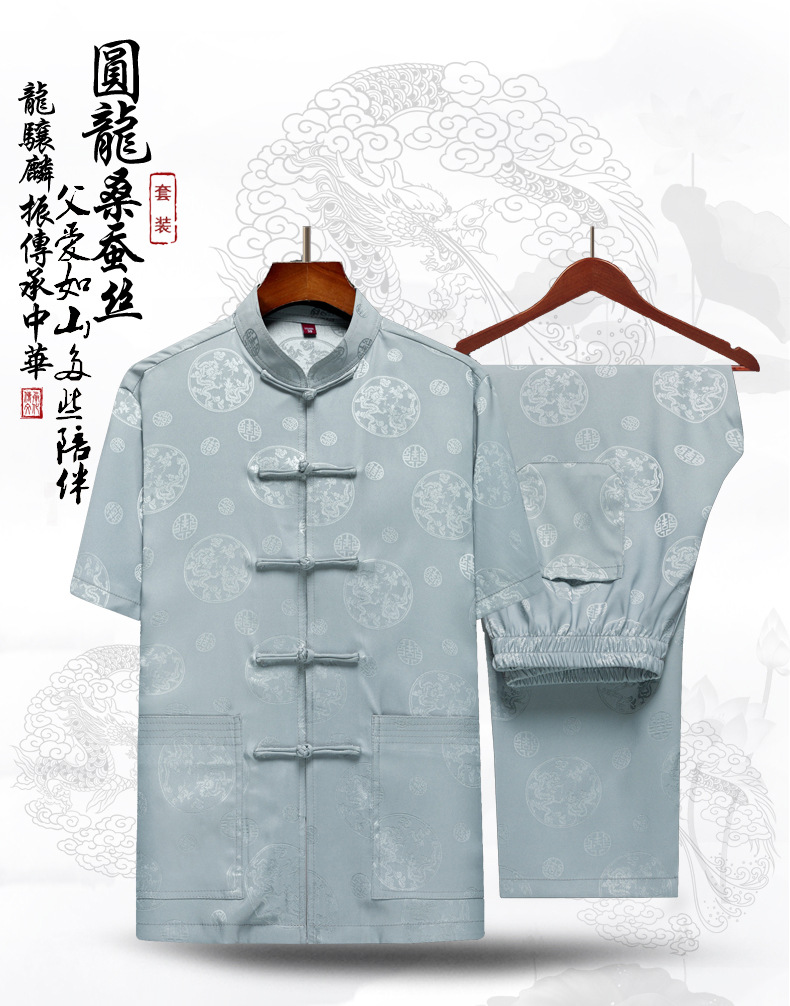 탕 세트 중년 · 노인 남성 여름 중국식 아이스 실크 아빠 세트 고급 할아버지 세트 중국 반팔 라운드 드래곤 세트스토어 가기
