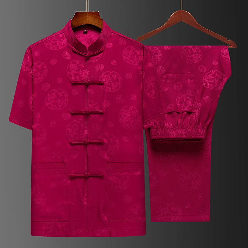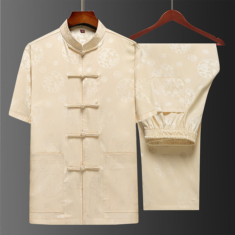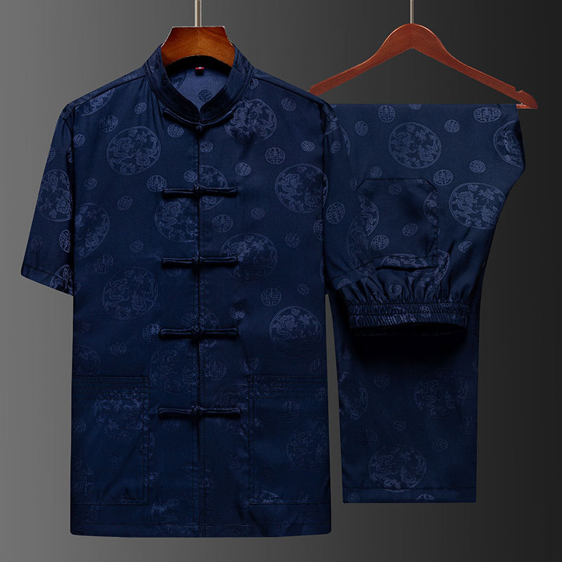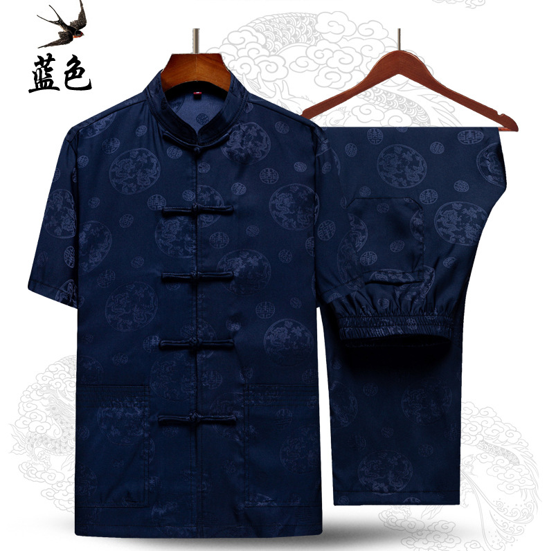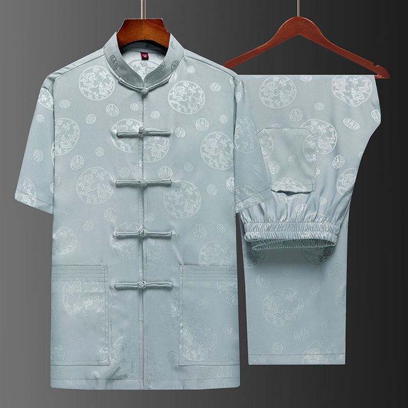 탕 세트 중년 · 노인 남성 여름 중국식 아이스 실크 아빠 세트 고급 할아버지 세트 중국 반팔 라운드 드래곤 세트