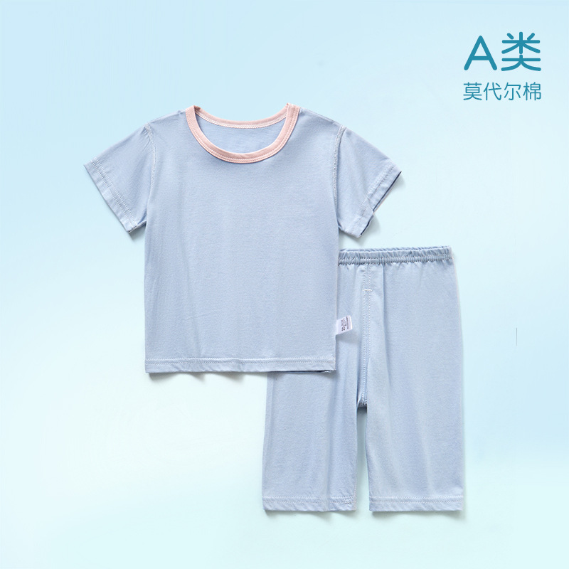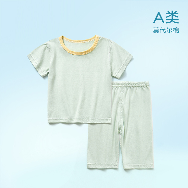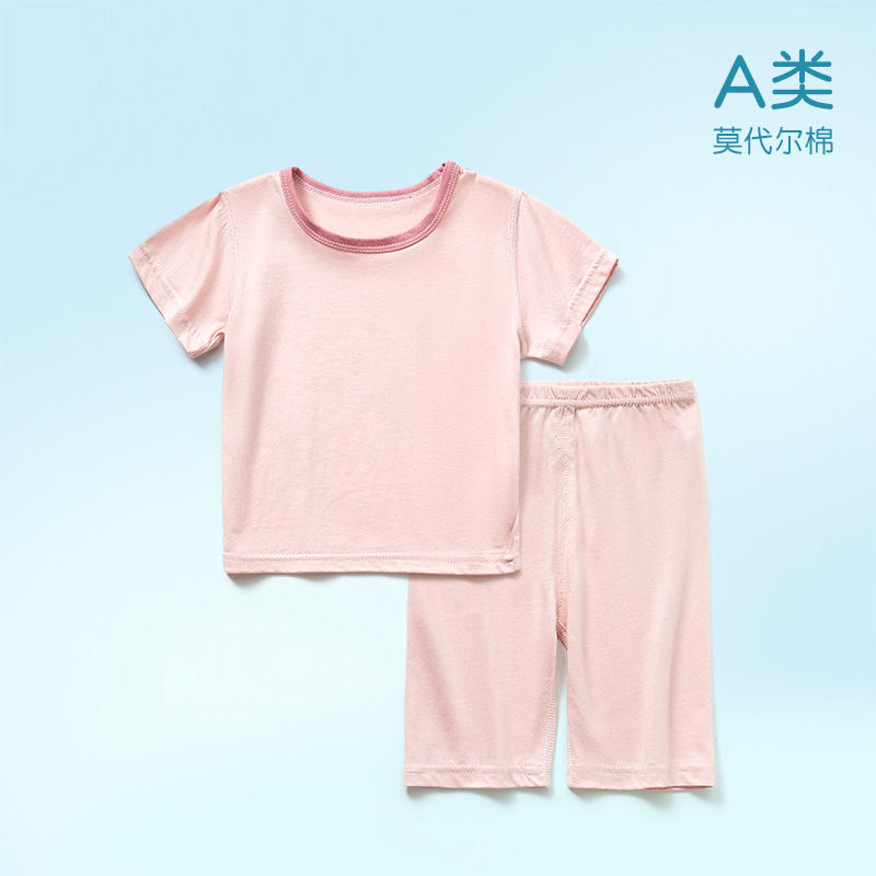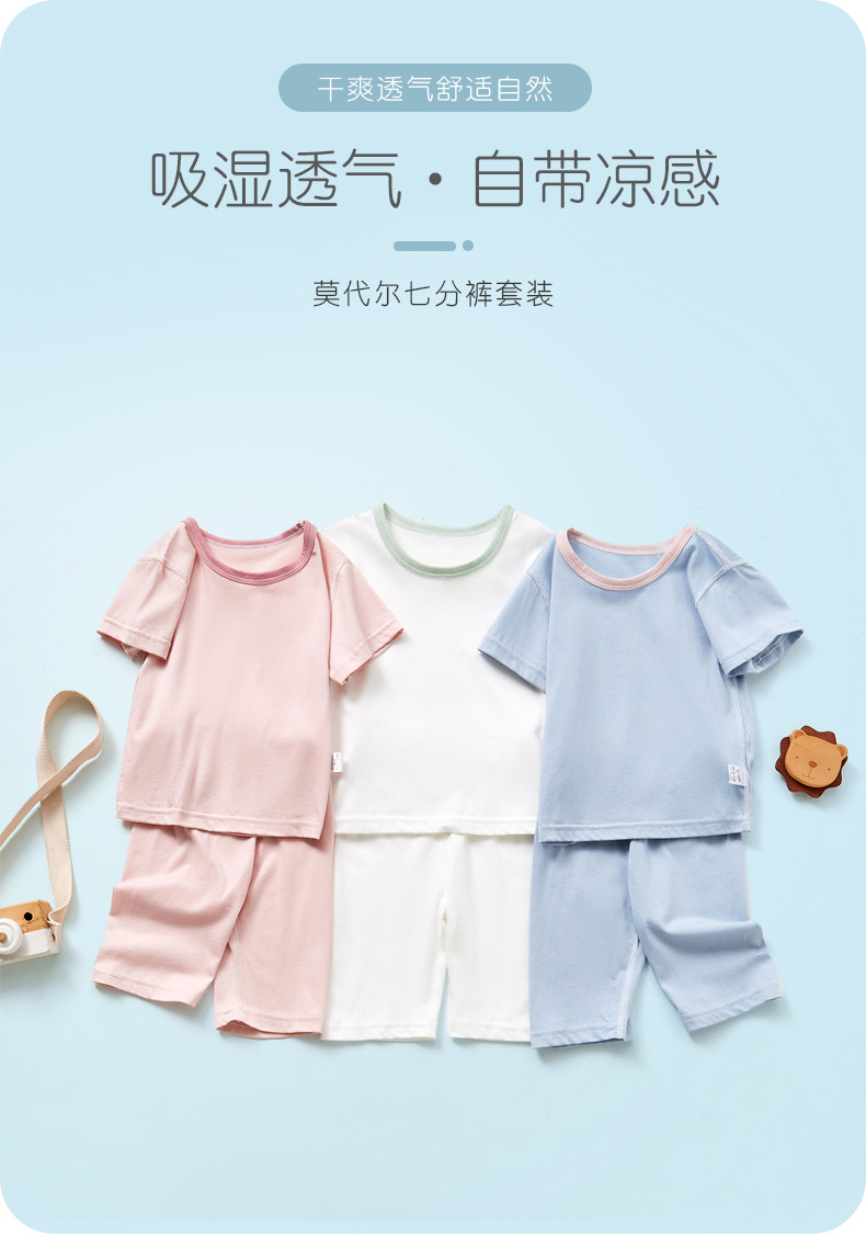 모달면 아기 잠옷 소년 소녀를위한 여름 얇은 아기 세트 에어컨 세트 반팔 7 점 바지 홈 옷스토어 가기
