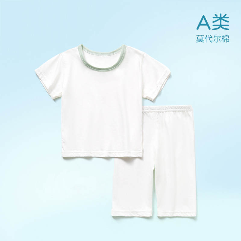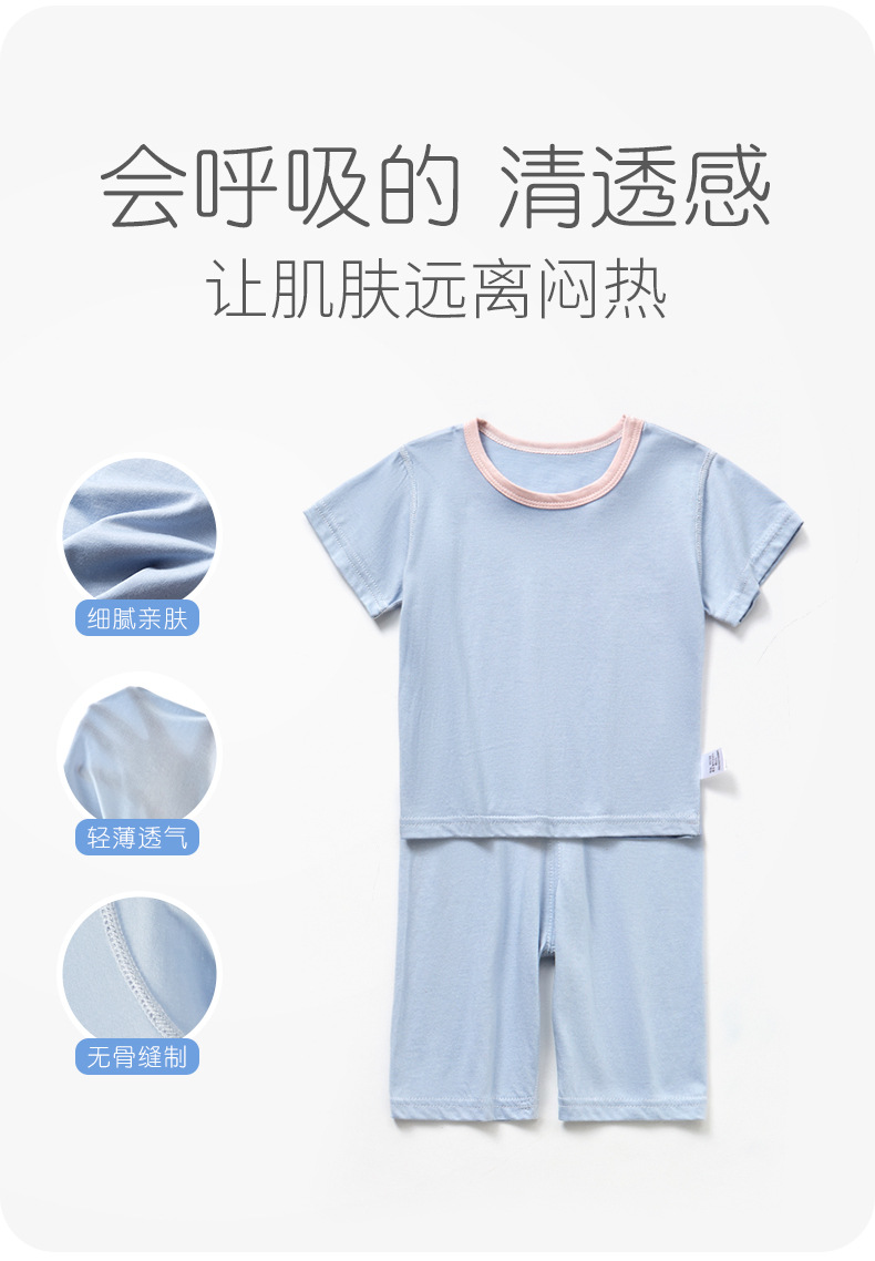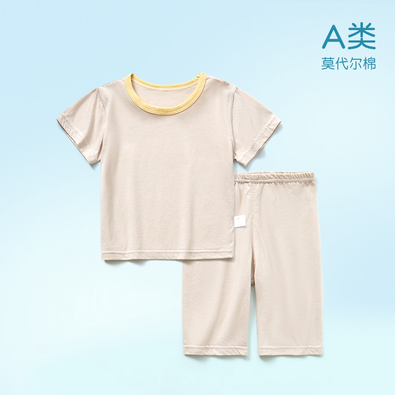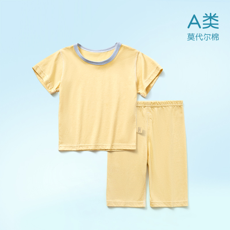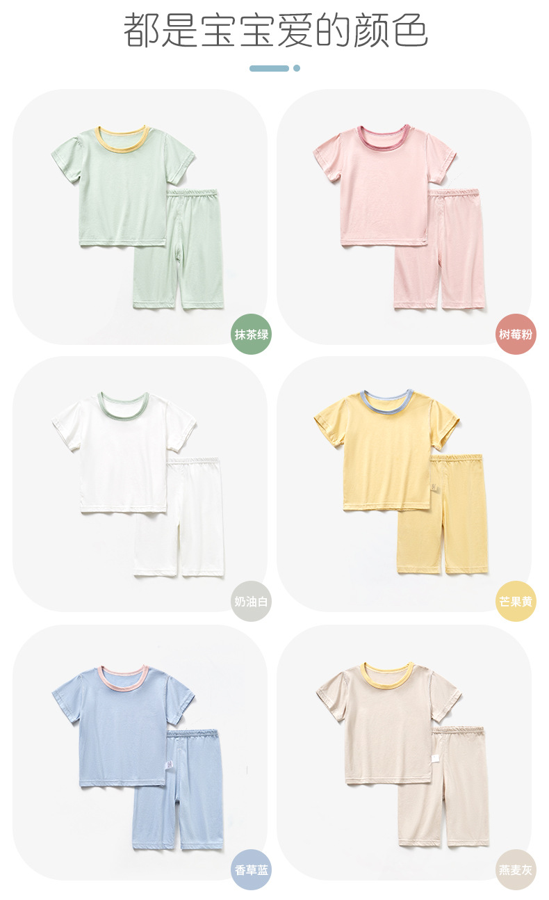 모달면 아기 잠옷 소년 소녀를위한 여름 얇은 아기 세트 에어컨 세트 반팔 7 점 바지 홈 옷스토어 가기