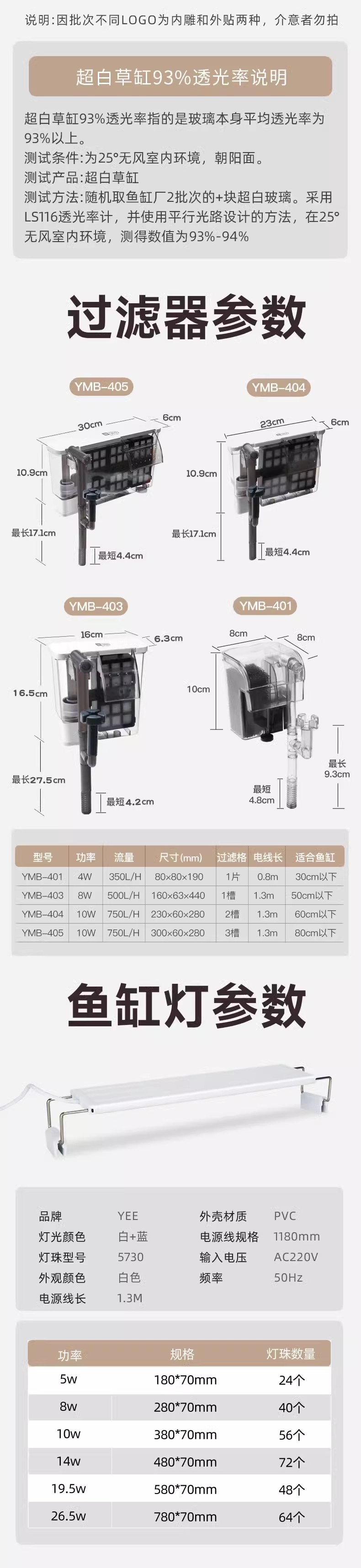 • 60x30x35cm 슈퍼 화이트 필터 패키지 벽걸이 필터 어항 램프