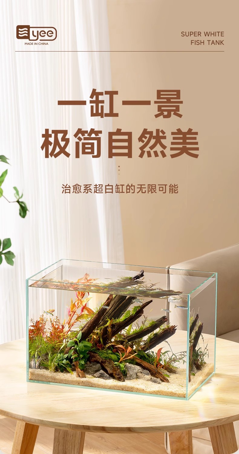 Yee 울트라 화이트 유리 물고기 탱크 데스크탑 거실 생태 거북이 탱크 조경 탱크 물고기 필터 유리 탱크 아마존스토어 가기