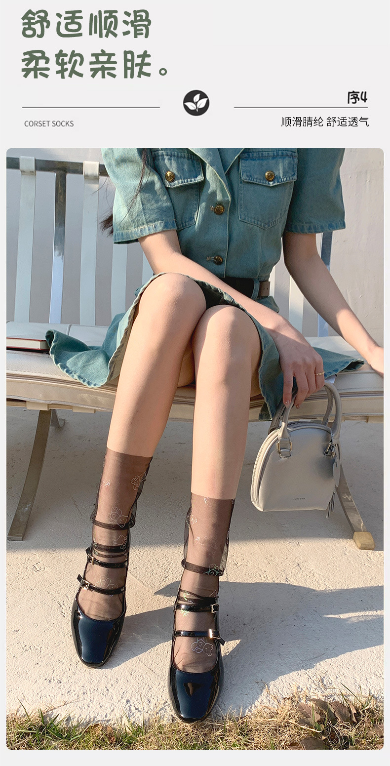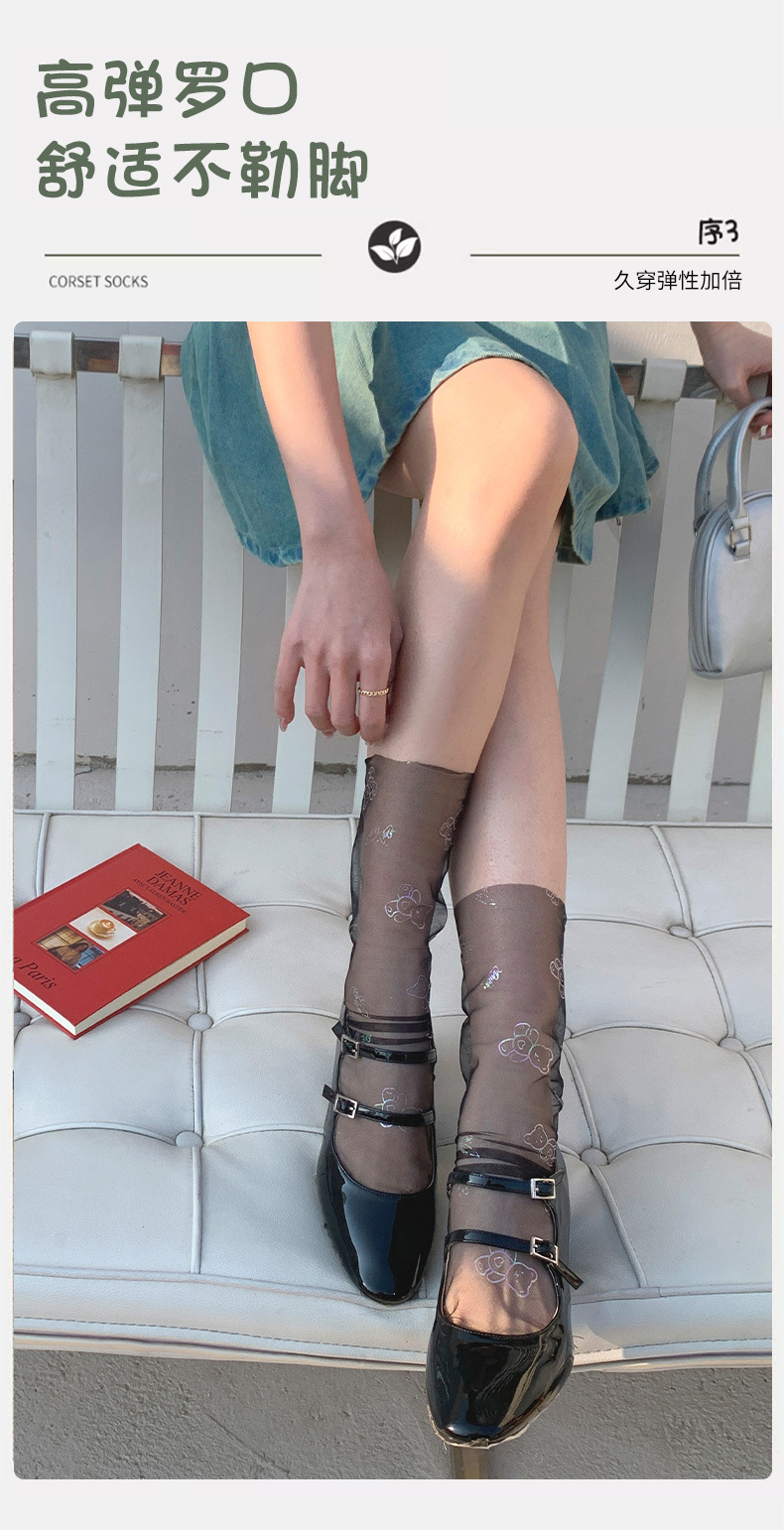 메쉬 양말 여성의 봄과 여름 얇은 중간 튜브 양말 매직 만화 곰 더미 양말 달콤한 귀여운 요정 주지 양말스토어 가기