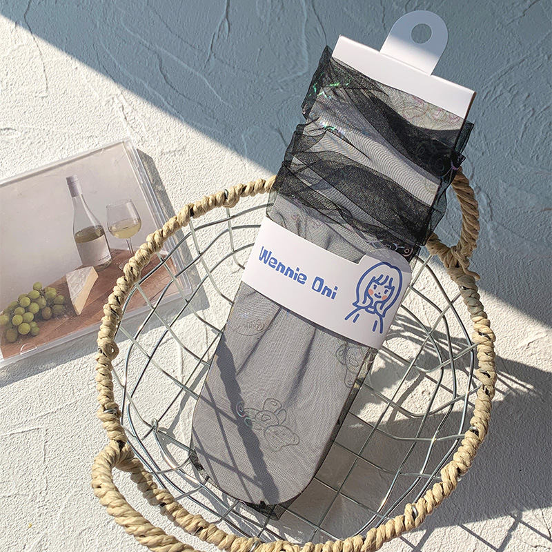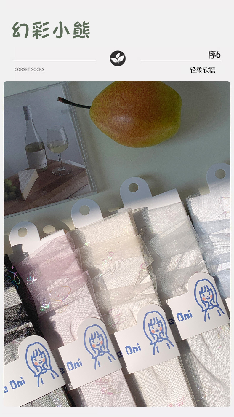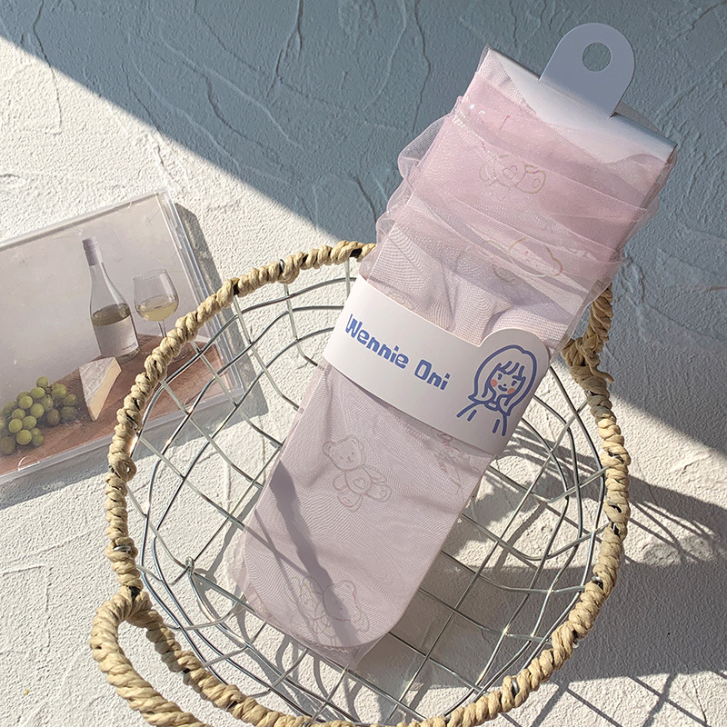 메쉬 양말 여성의 봄과 여름 얇은 중간 튜브 양말 매직 만화 곰 더미 양말 달콤한 귀여운 요정 주지 양말