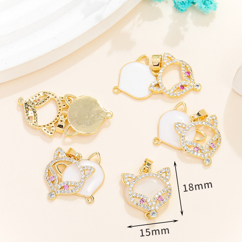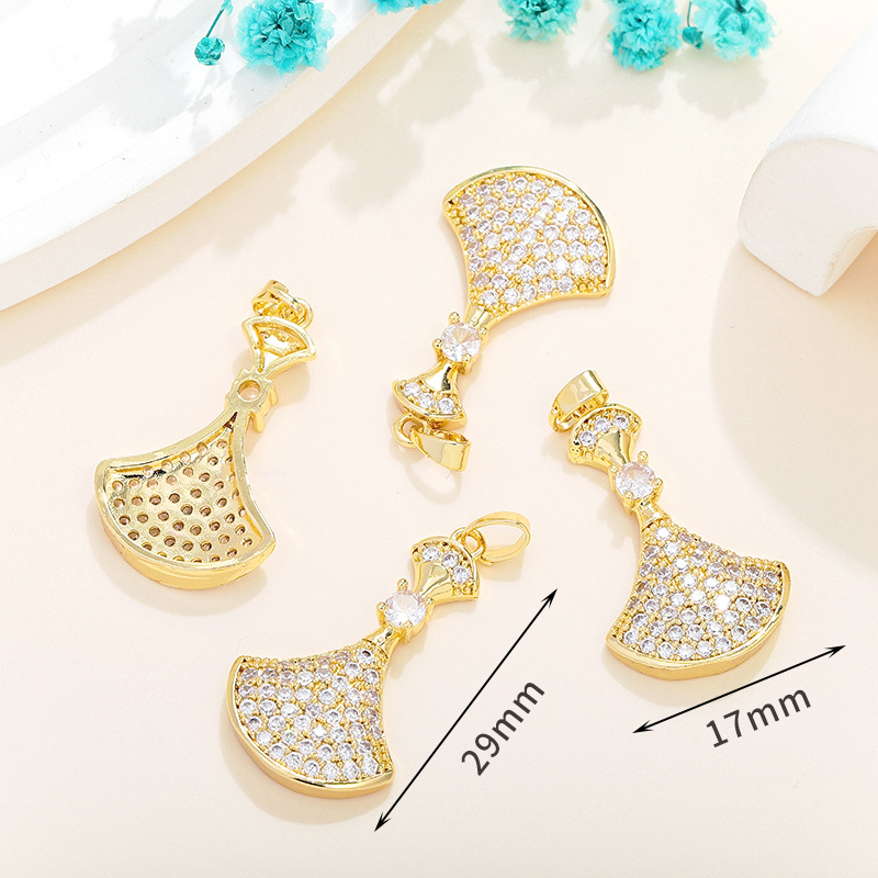 구리 도금 18K 트루 골드 마이크로 세트 라인스톤 지르콘 기하학적 펜던트 한국 올 매치 DIY 팔찌 목걸이 액세서리스토어 가기