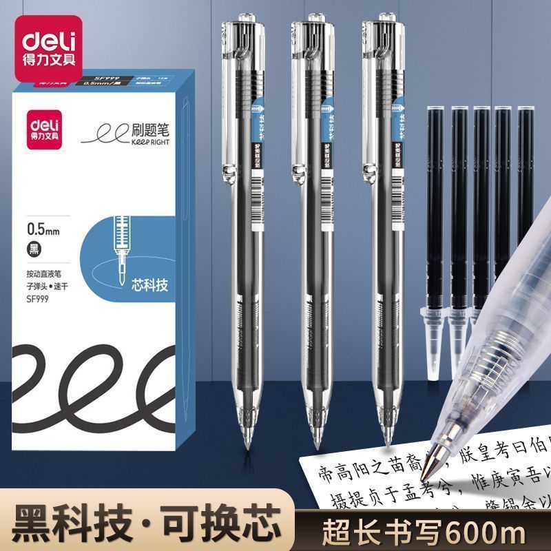 델리 SF999 프레스 직접 액체 볼 펜 대용량 빠른 건조 0.5mm 총알 머리 학생 특수 브러시 펜