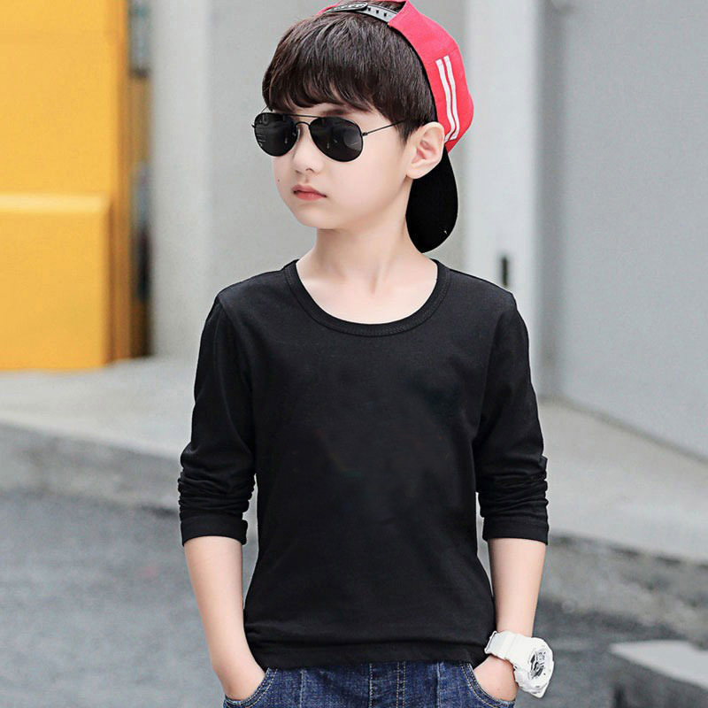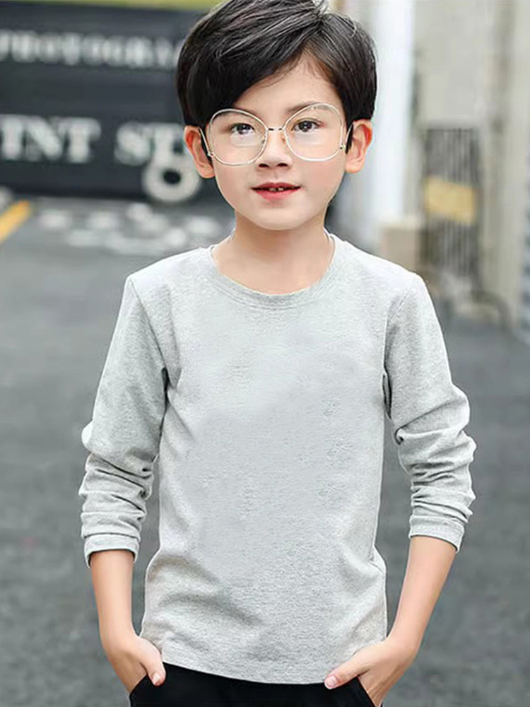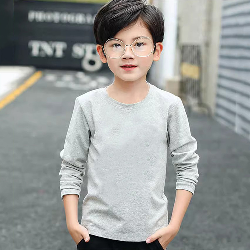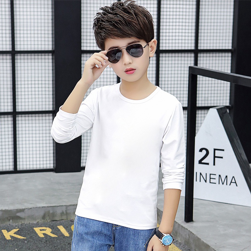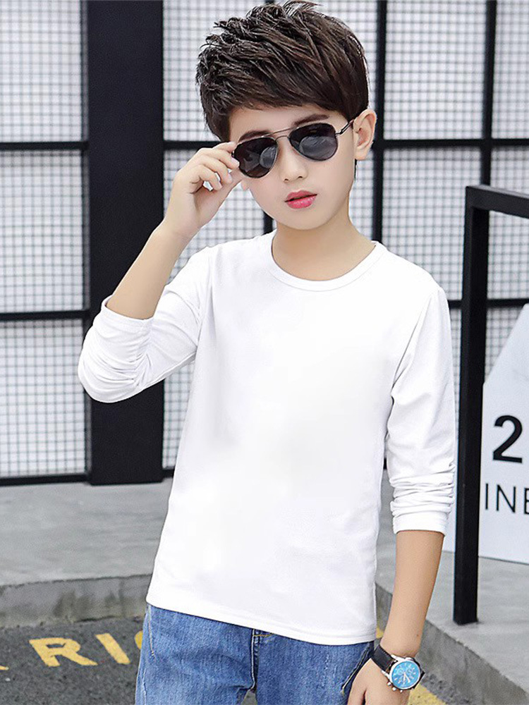 소년의 긴 소매 티셔츠 2024 새로운 어린이 화이트 탑 봄과 가을 중대 어린이 순면 순수한 흰색베이스 셔츠 트렌디-스토어 가기