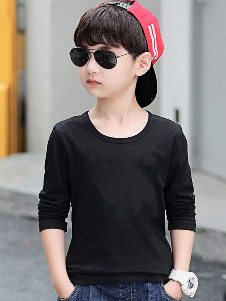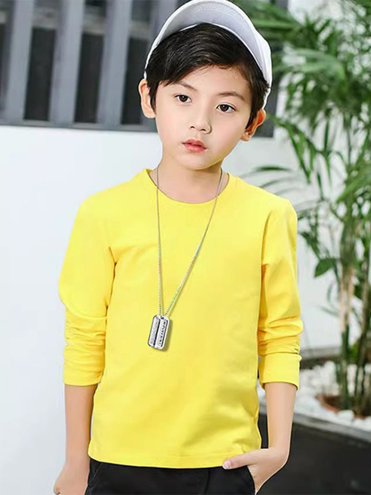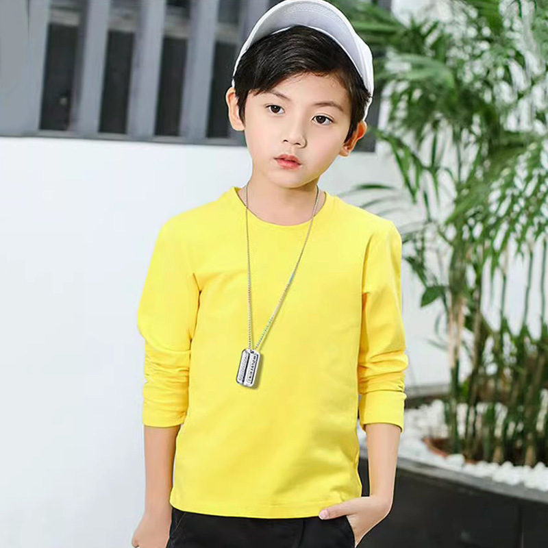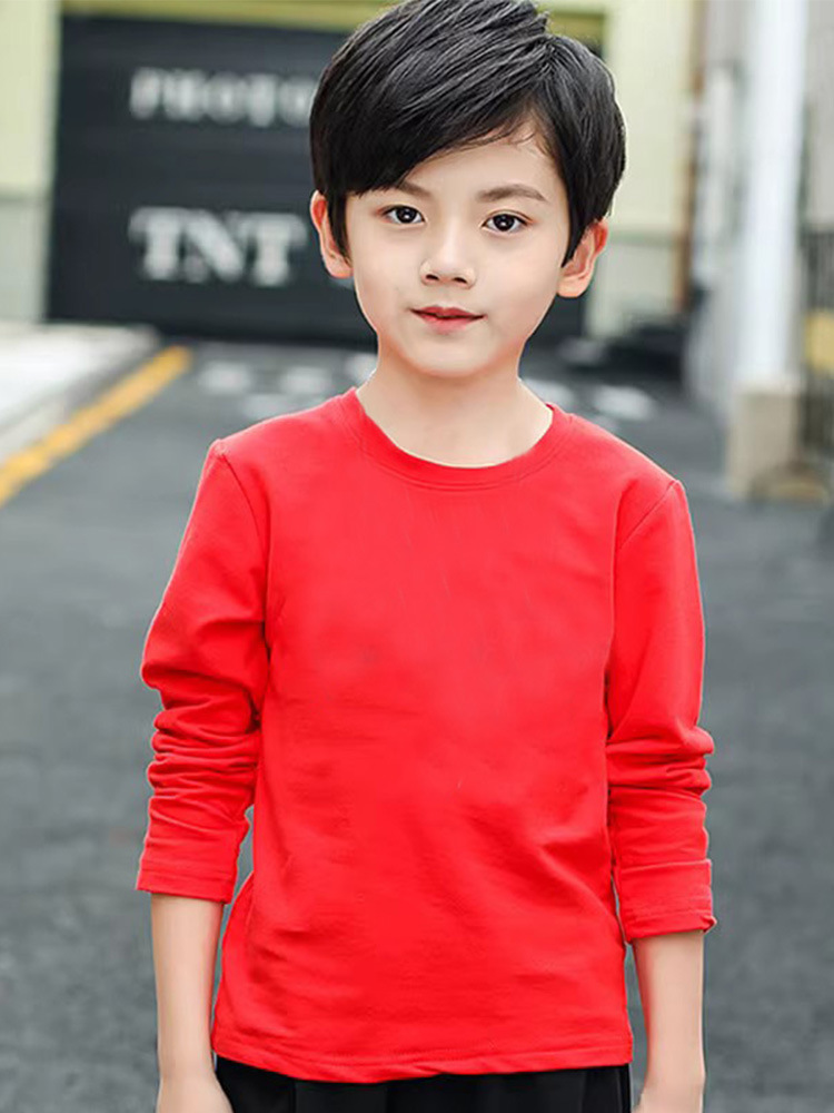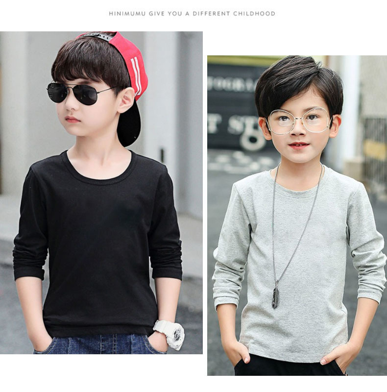 소년의 긴 소매 티셔츠 2024 새로운 어린이 화이트 탑 봄과 가을 중대 어린이 순면 순수한 흰색베이스 셔츠 트렌디-스토어 가기