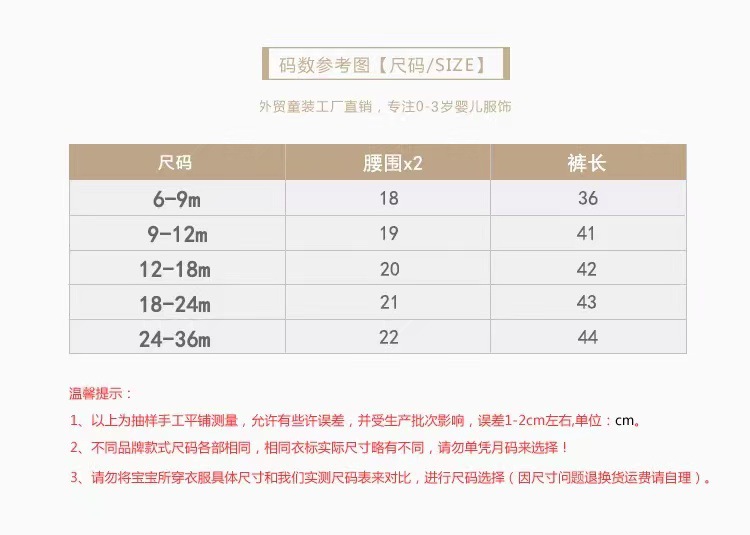 【尺码/SIZE】 6-9 9-12 12-18 18-24 24-36M 36-48M 48-60M
