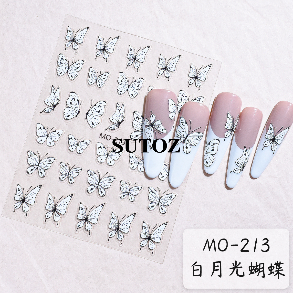 2024 철자 저녁 새로운 네일 아트 스티커 Ins 간단한 흰색 달빛 나비 요정 네일 다시 접착 스티커스토어 가기