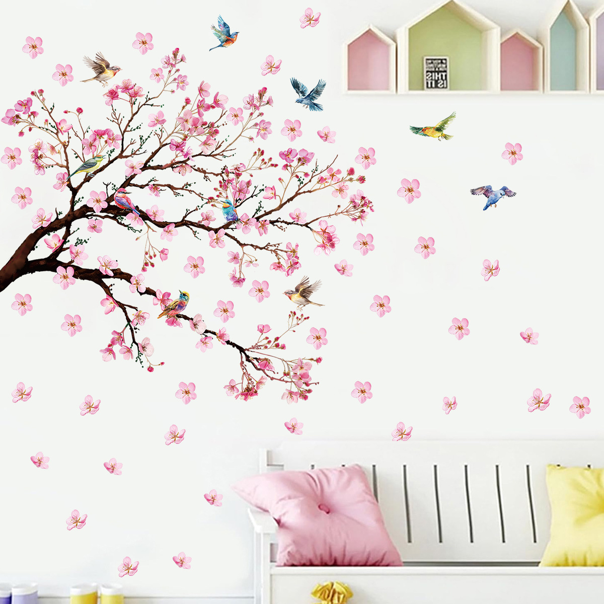 BR0149M 중국 스타일 컬러 아트 복숭아 꽃 지점 새 자체 접착 벽 스티커 홈 배경 벽 장식 스티커스토어 가기