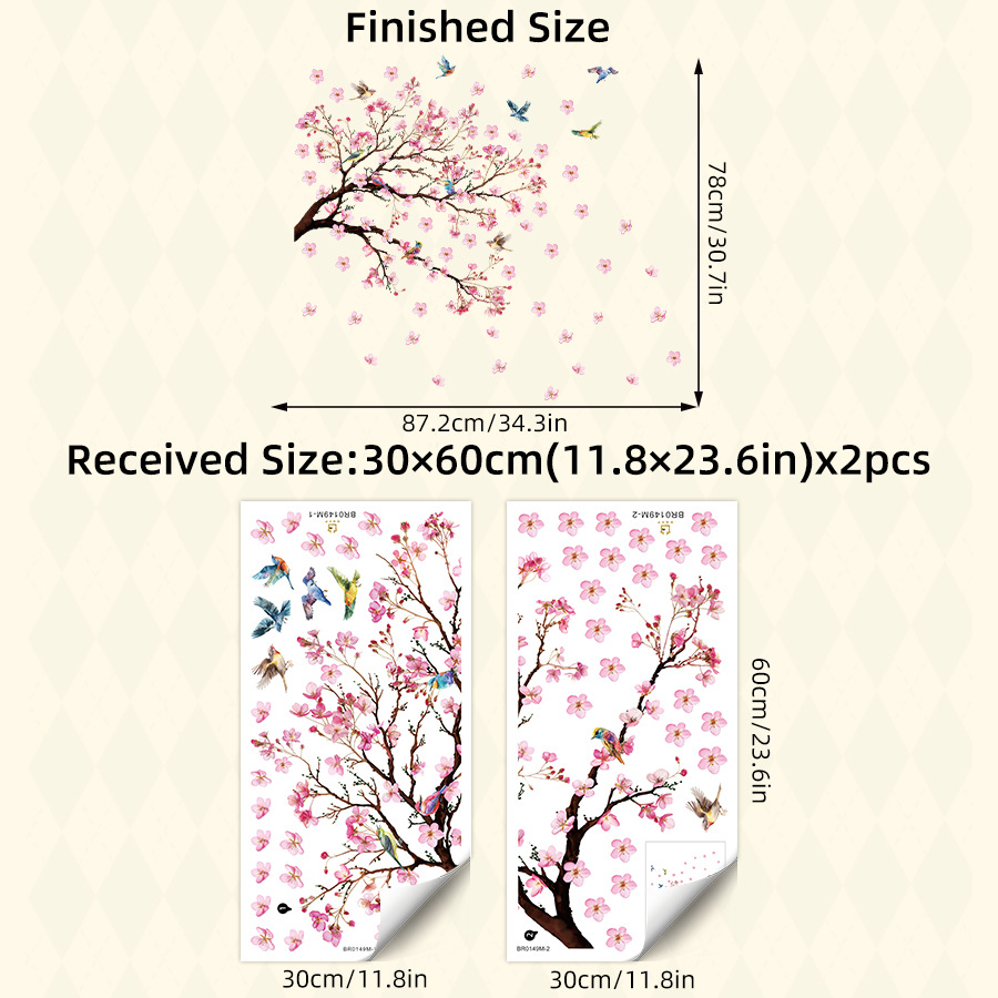 BR0149M 중국 스타일 컬러 아트 복숭아 꽃 지점 새 자체 접착 벽 스티커 홈 배경 벽 장식 스티커