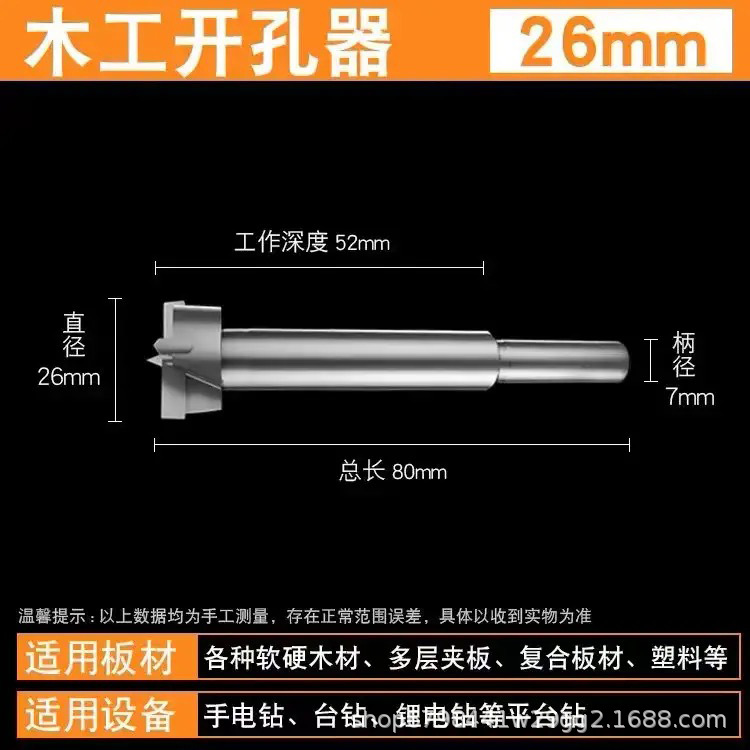适用于各类木材、木板、木桌、木柜、各类石膏板、塑料板等开孔