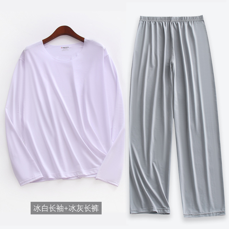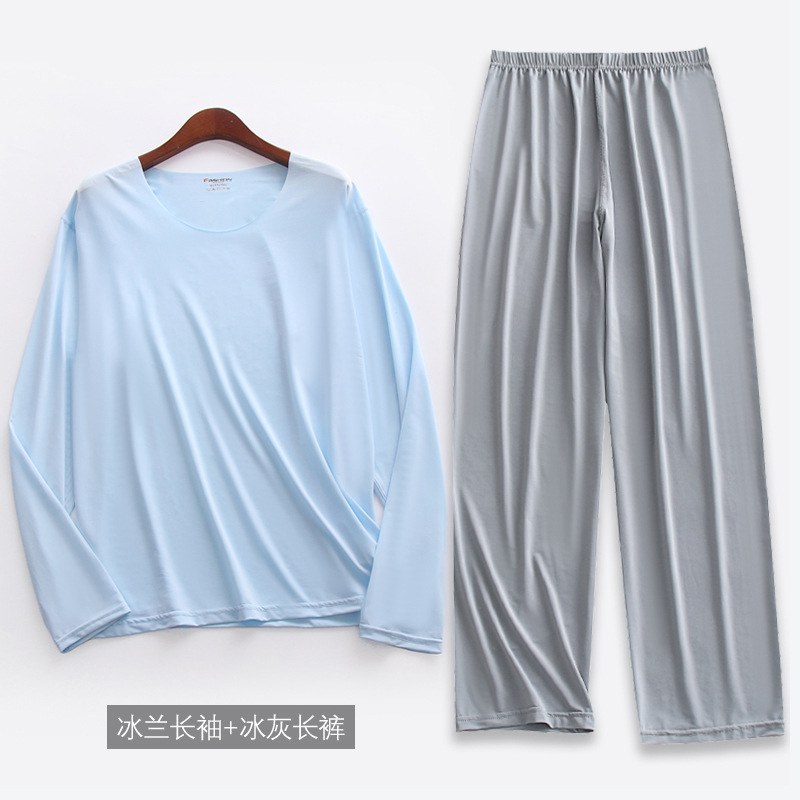 [리퀴드 아이스 실크] 봄과 여름 초박형 남자 긴팔 9 점 바지 파자마 세트 고탄성 홈 옷