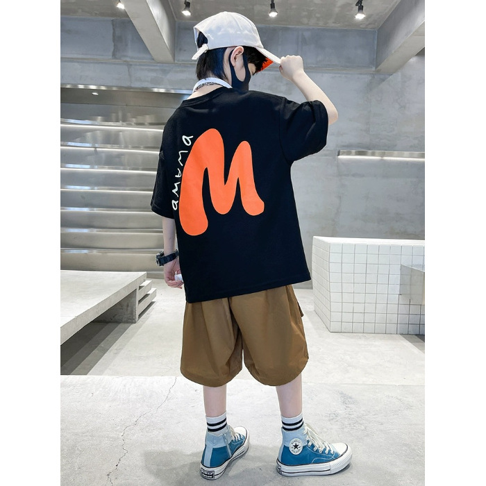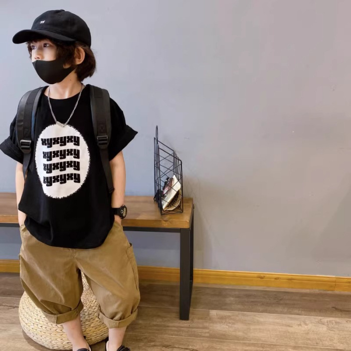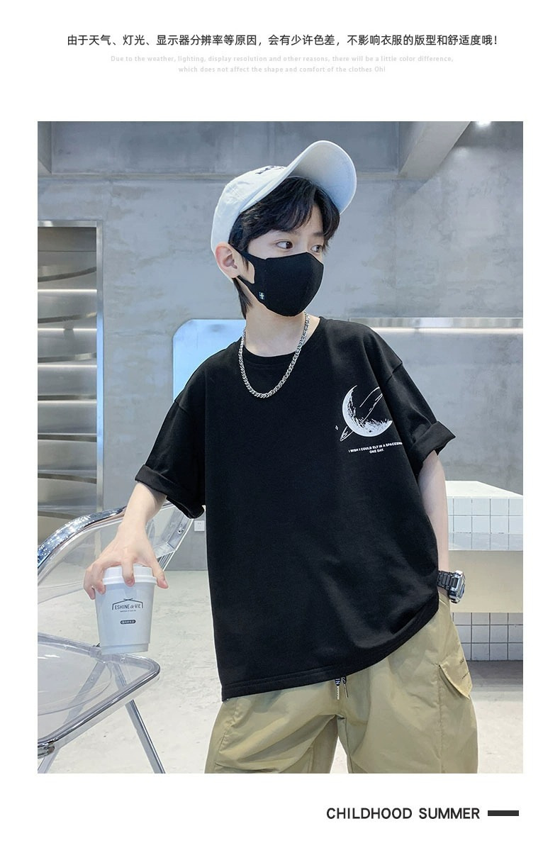 소년 여름 반팔 티셔츠 유행 순수 코튼 중대형 아동 의류 여름 2025 새 소년 반팔 티셔츠 탑스토어 가기