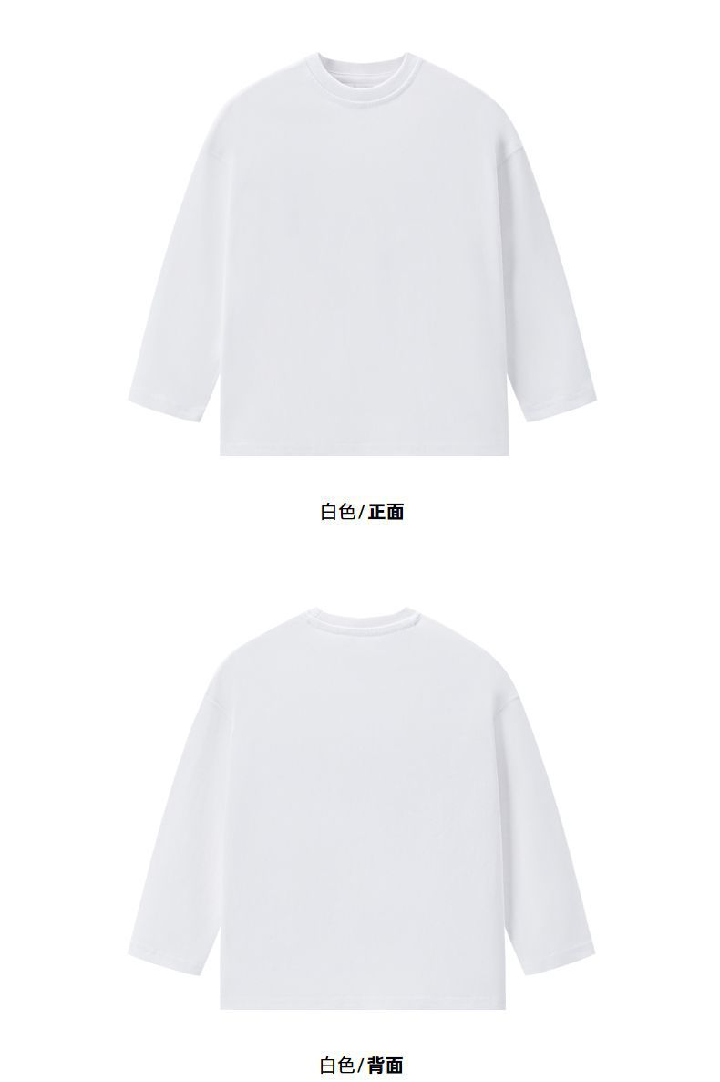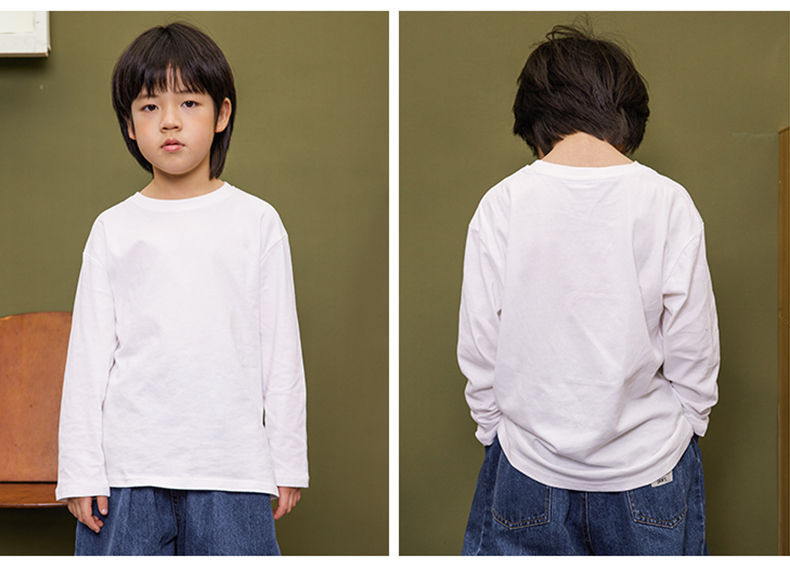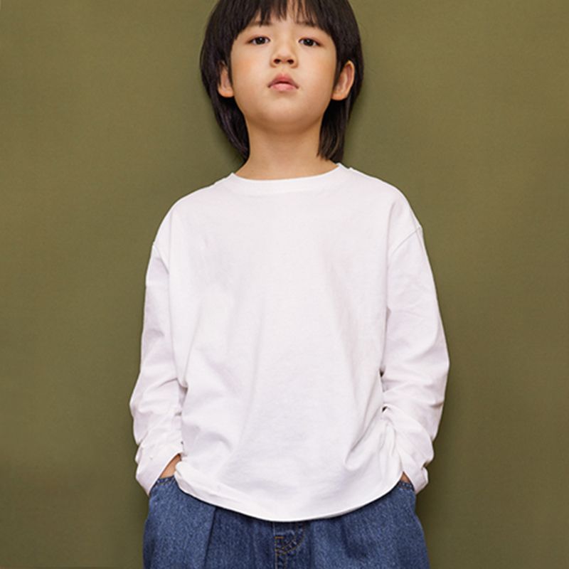 중다 아동면 긴팔 티셔츠 순수 화이트 보이즈 베이스 셔츠 2024 봄과 가을 둥근 목 단색 티셔츠스토어 가기