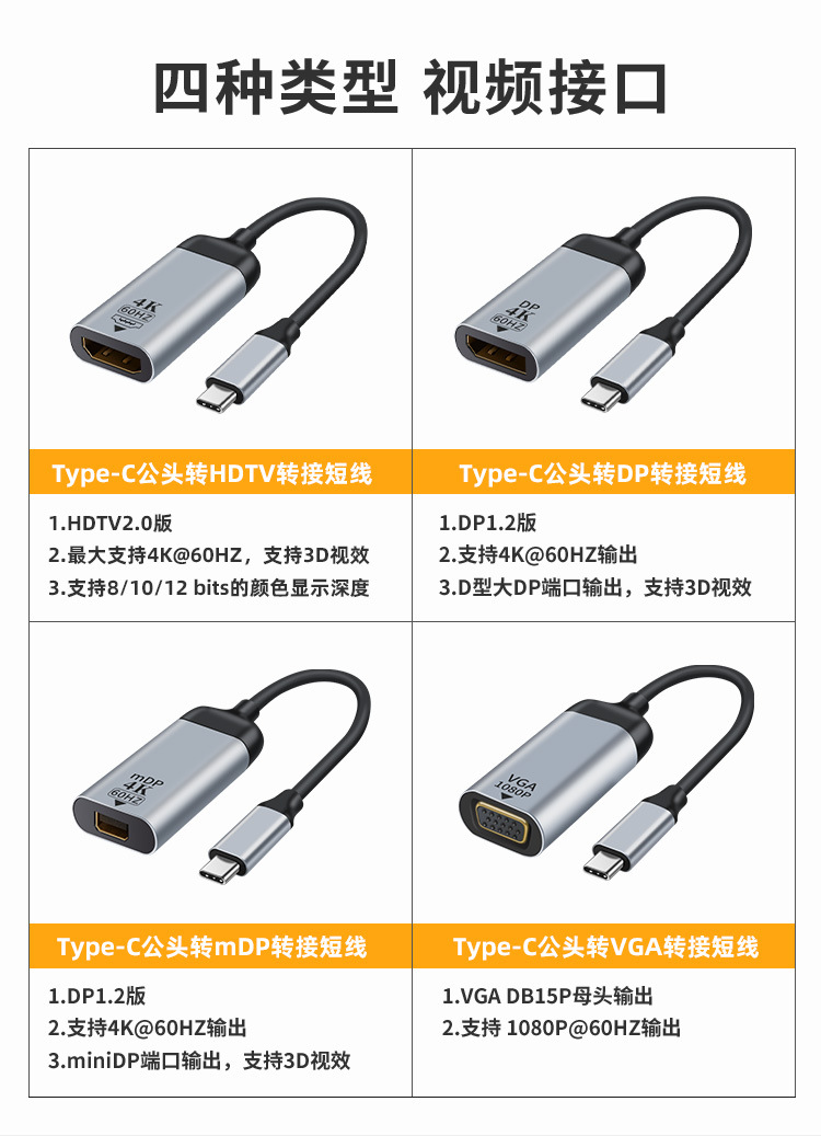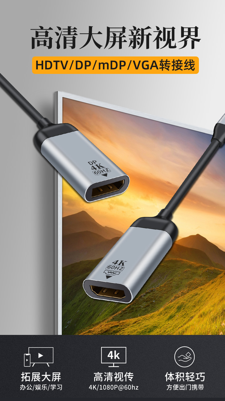 DP 여성 TYPE-C 남성 오디오 및 비디오 짧은 라인 4K @ 60HZ 오디오 및 비디오 전송 짧은 라인 컴퓨터 호스트 모니터스토어 가기