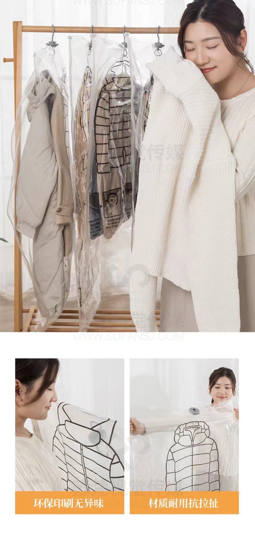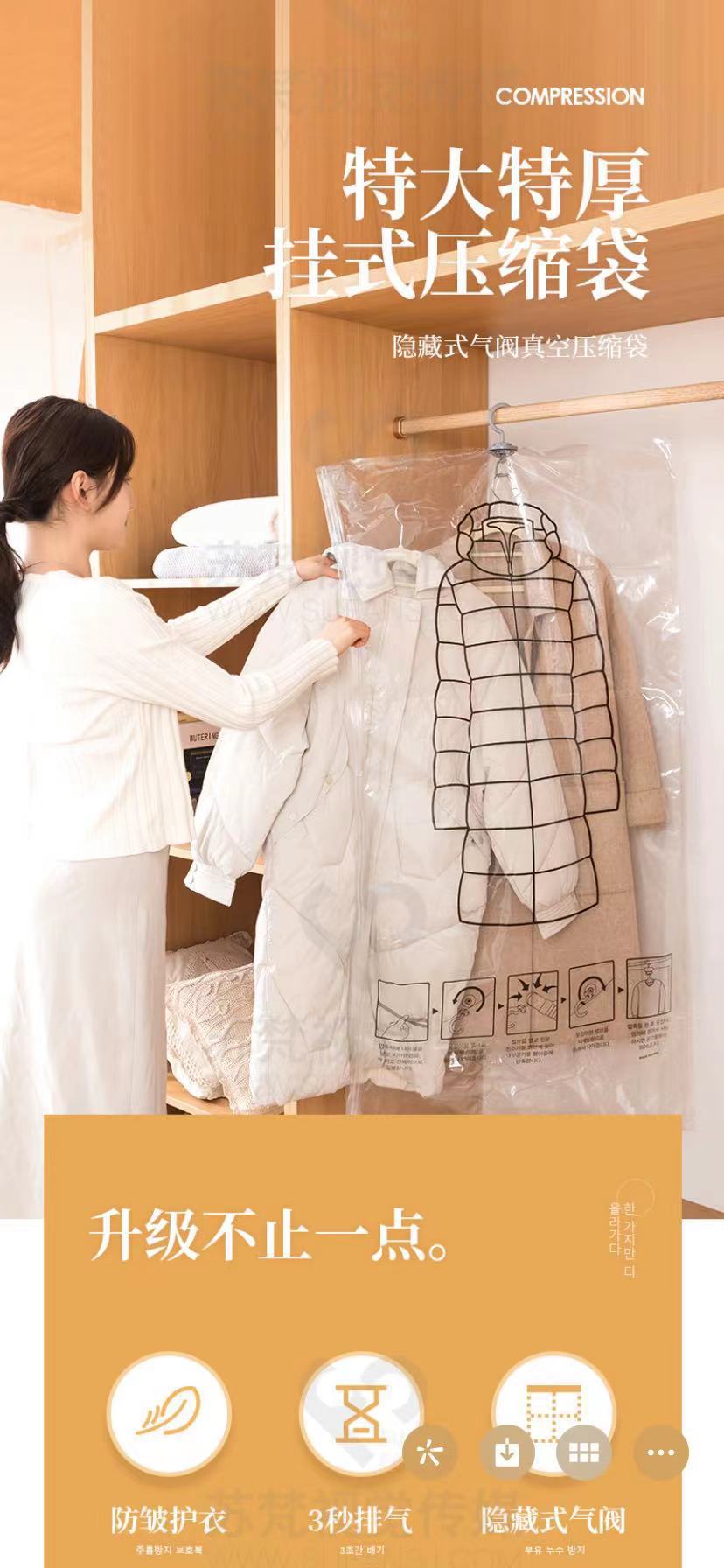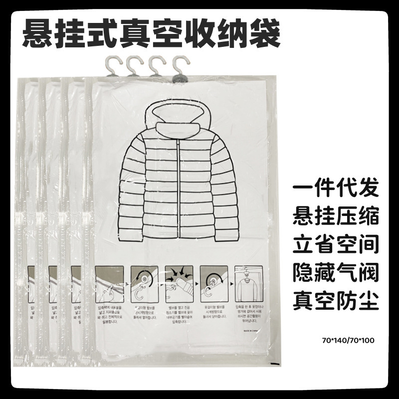 진공 압축 가방 먼지 커버 의류 큰 옷 특수 보관 유물을 걸고있는 다운 재킷 보관 가방스토어 가기