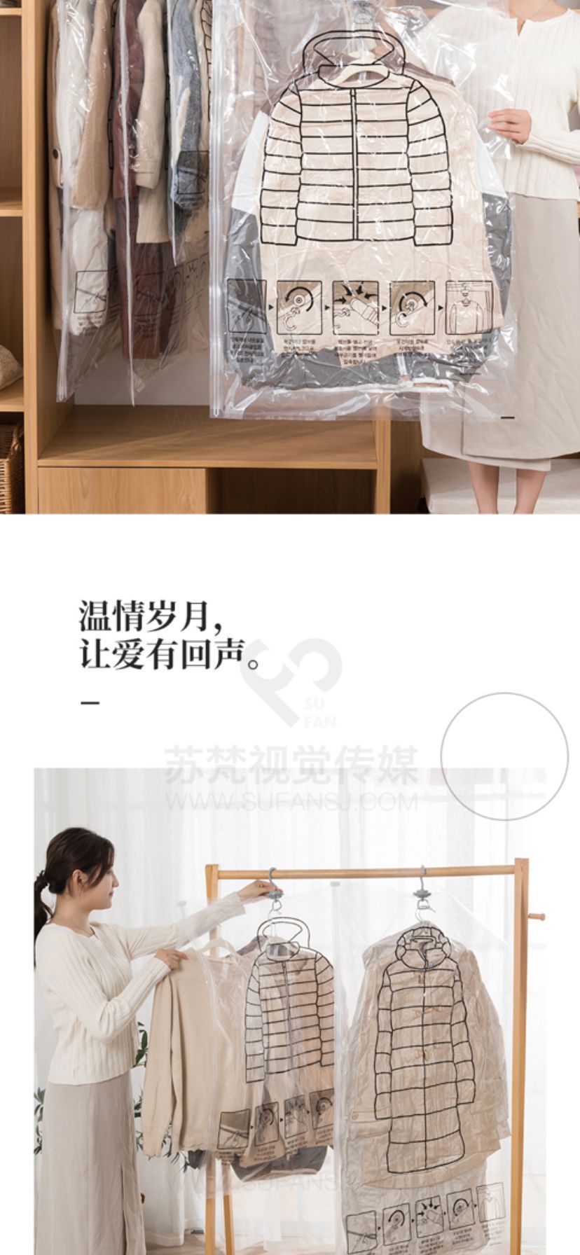 진공 압축 가방 먼지 커버 의류 큰 옷 특수 보관 유물을 걸고있는 다운 재킷 보관 가방