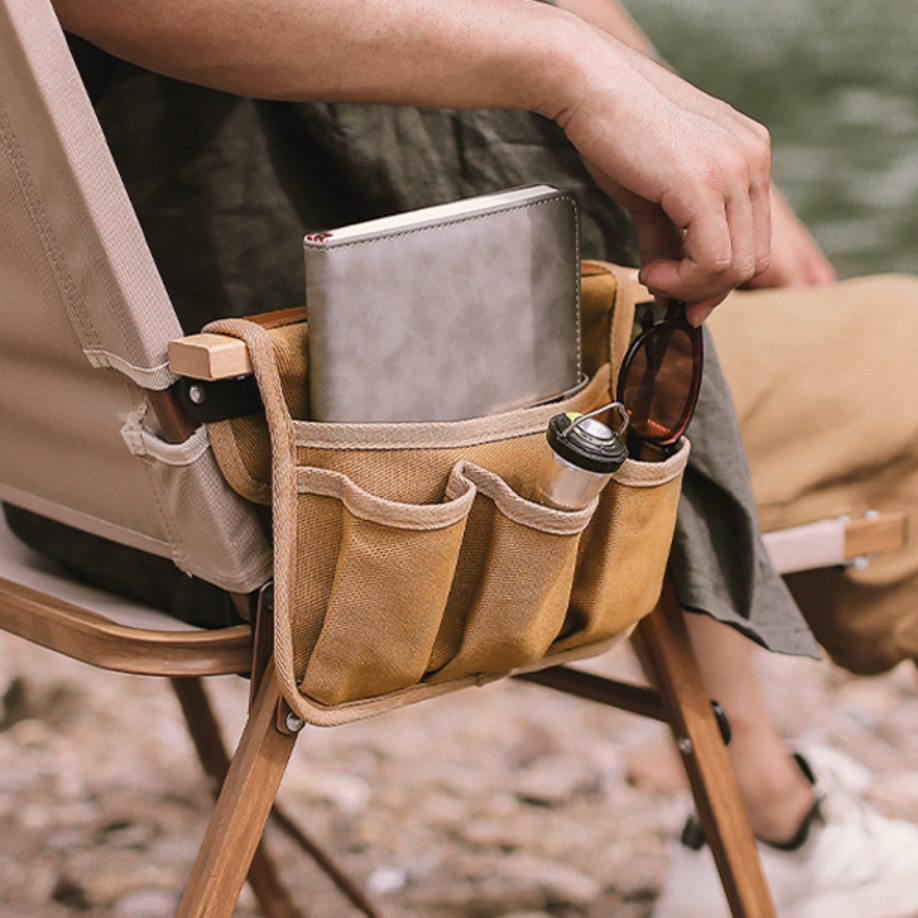 야외 캠핑 캔버스 의자, 스툴, 팔걸이 걸이 가방, 측면 다기능 휴대용 수납 가방, 캠핑 용품스토어 가기