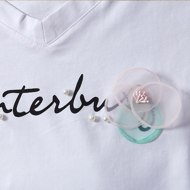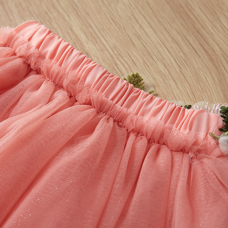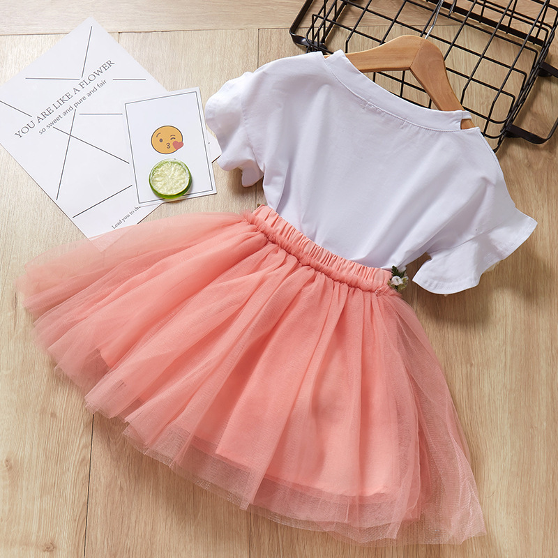 6270 소녀의 알파벳 천 꽃 플라잉 슬리브 코튼 티셔츠 꽃 베일 원피스 세트 원피스 어린이 폰툰 스커트스토어 가기