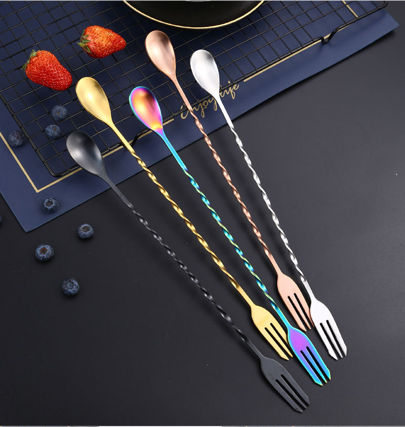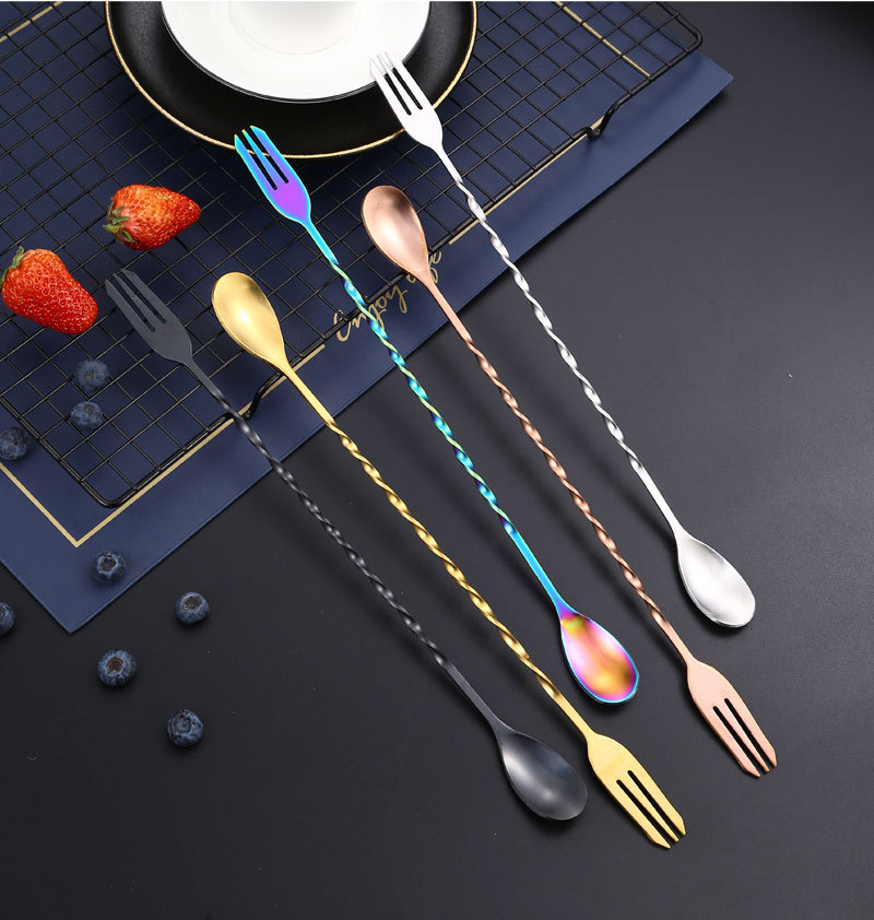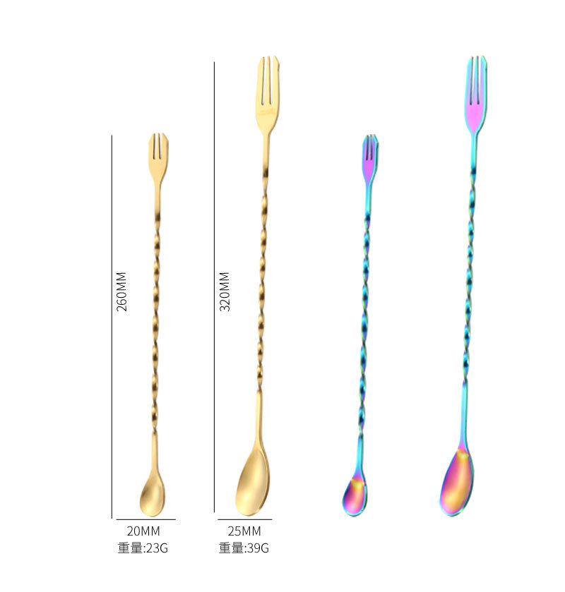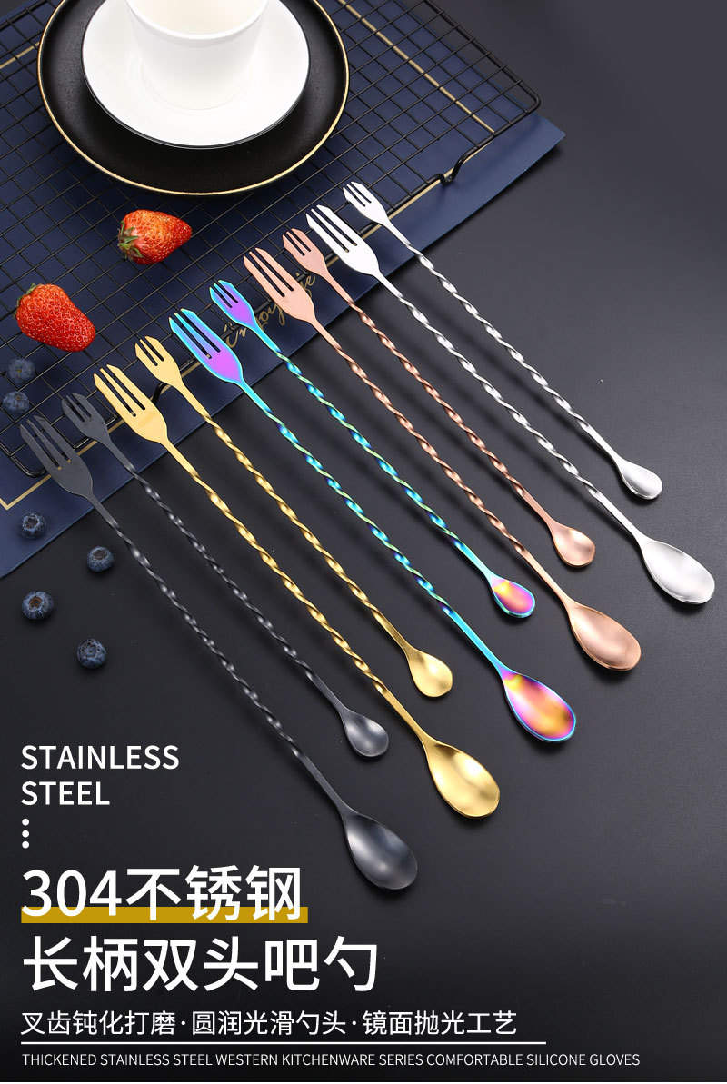 304 스테인레스 스틸 롱 핸들 더블 바 스푼 칵테일 혼합 스푼 스푼 바 혼합 스푼 우유 차 이중 목적 아이스 스푼 바 스푼