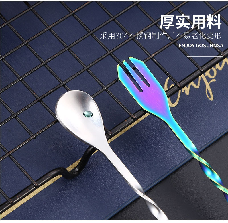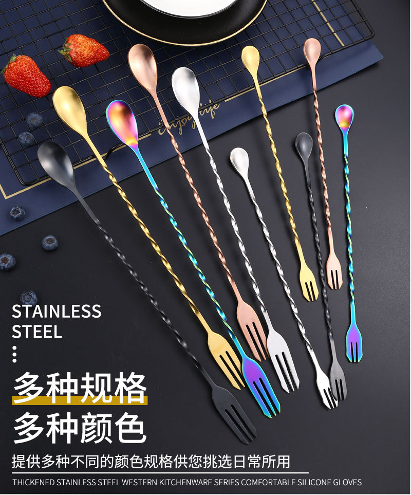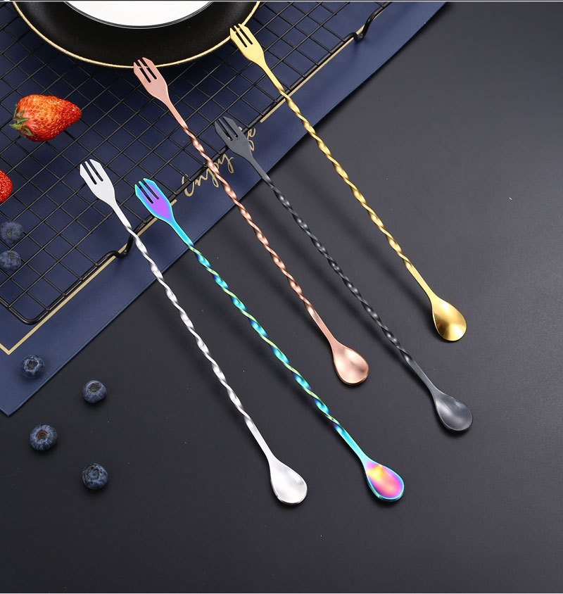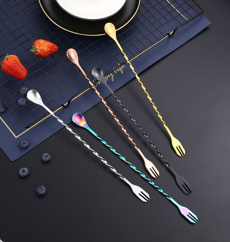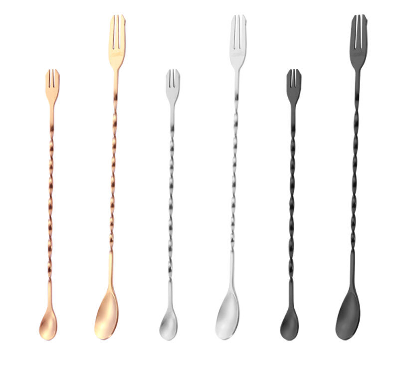 304 스테인레스 스틸 롱 핸들 더블 바 스푼 칵테일 혼합 스푼 스푼 바 혼합 스푼 우유 차 이중 목적 아이스 스푼 바 스푼