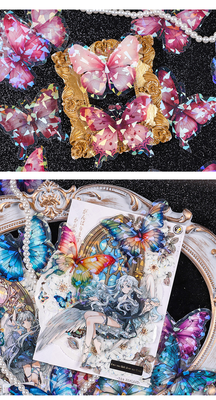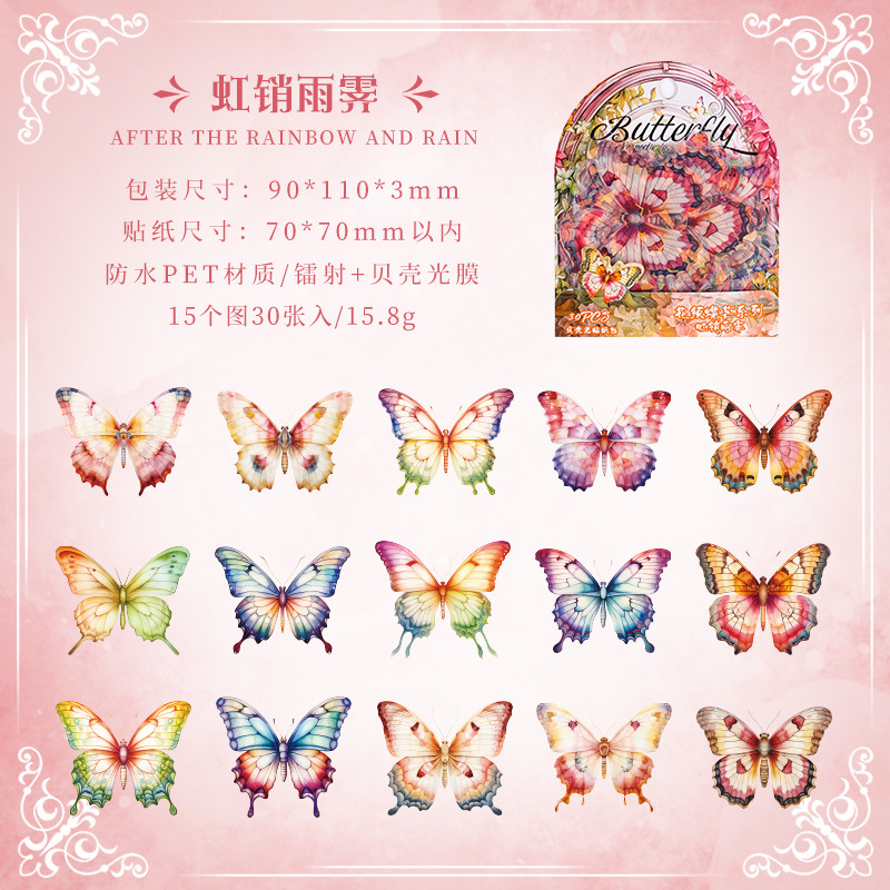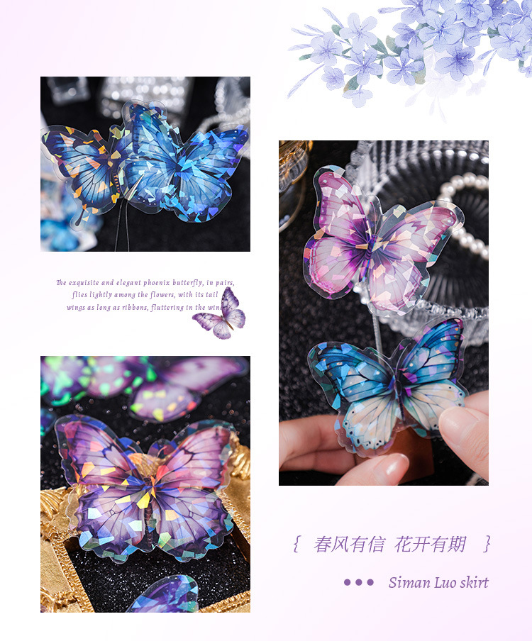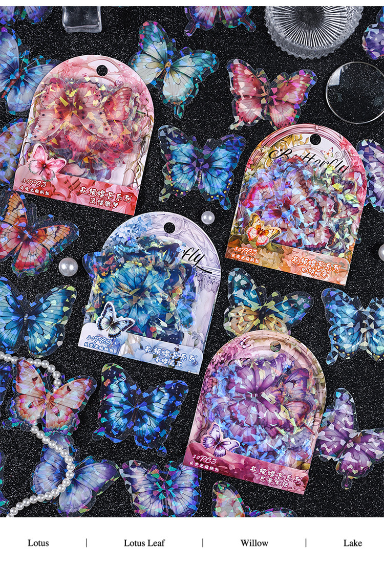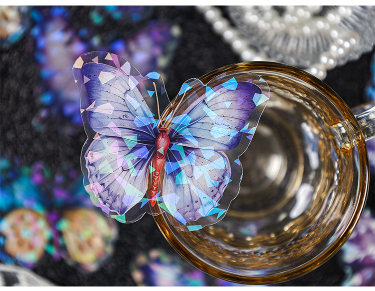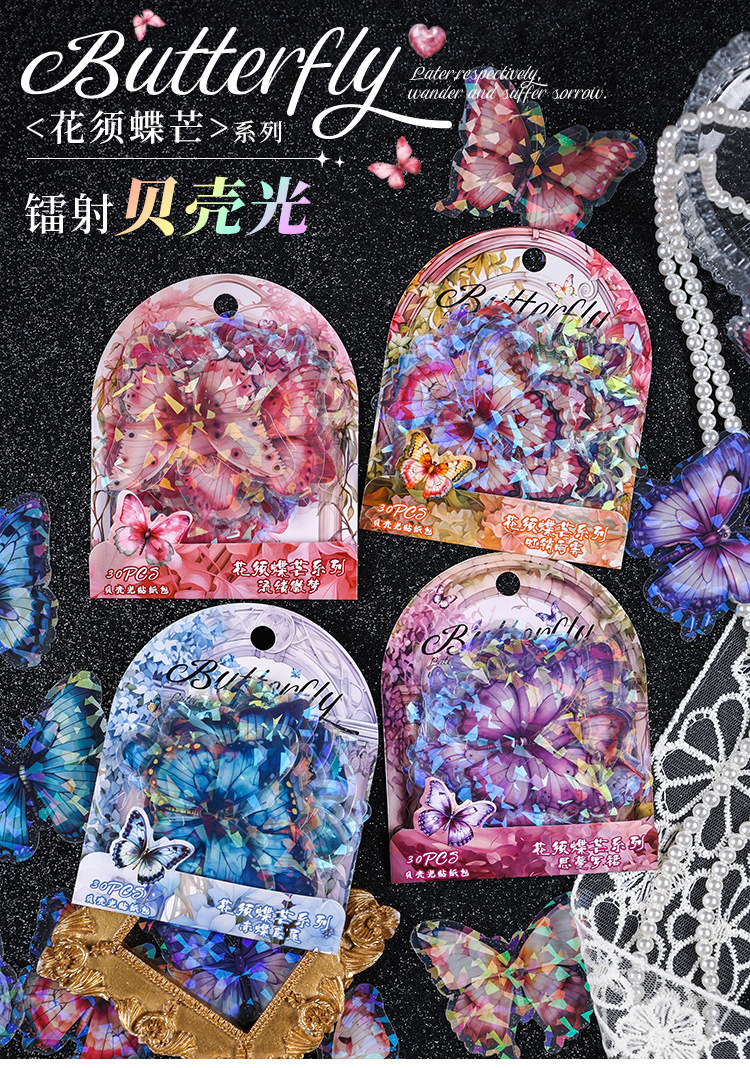 꽃 수염 나비 awm 쉘 라이트 레이저 방수 스티커 종이 가방 애완 동물 컷 필름 어린이 손 계정 스티커 diy 손 계정 소재 가방스토어 가기
