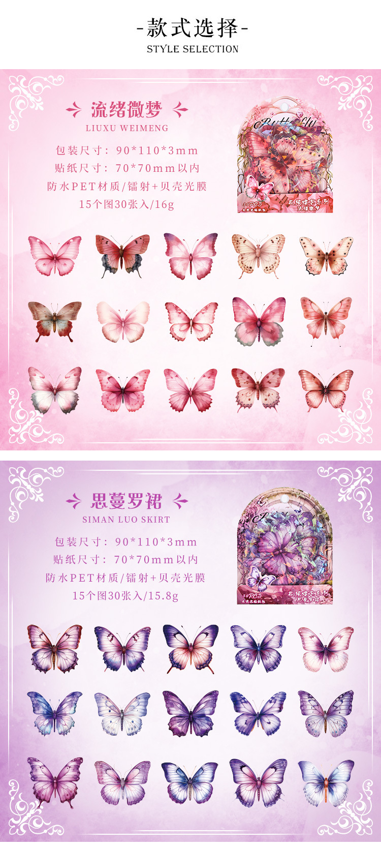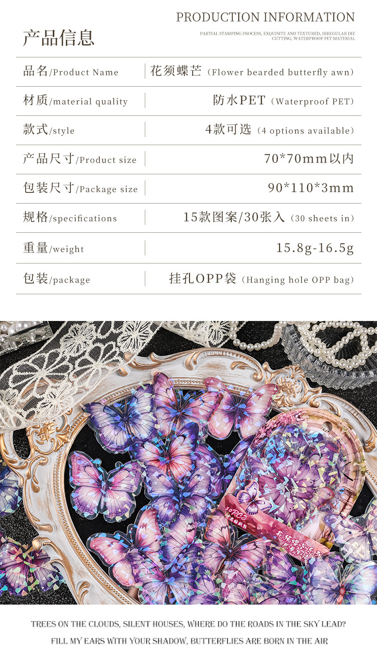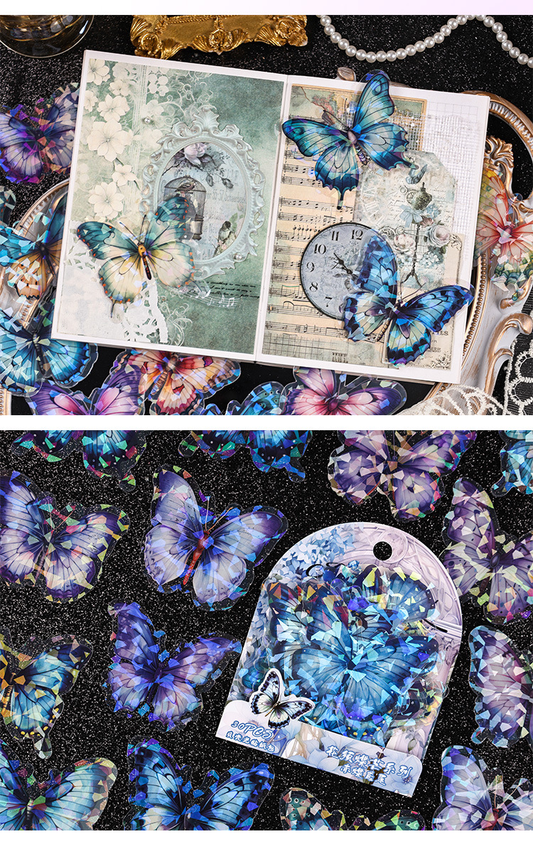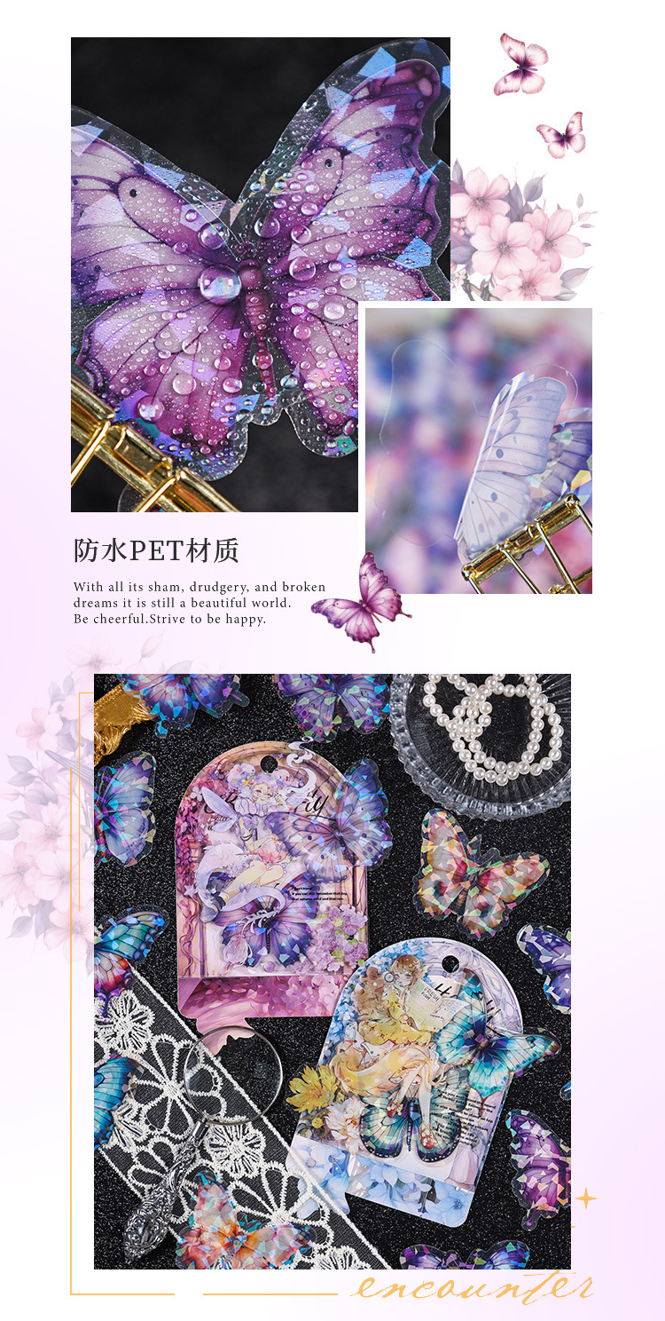 꽃 수염 나비 awm 쉘 라이트 레이저 방수 스티커 종이 가방 애완 동물 컷 필름 어린이 손 계정 스티커 diy 손 계정 소재 가방스토어 가기