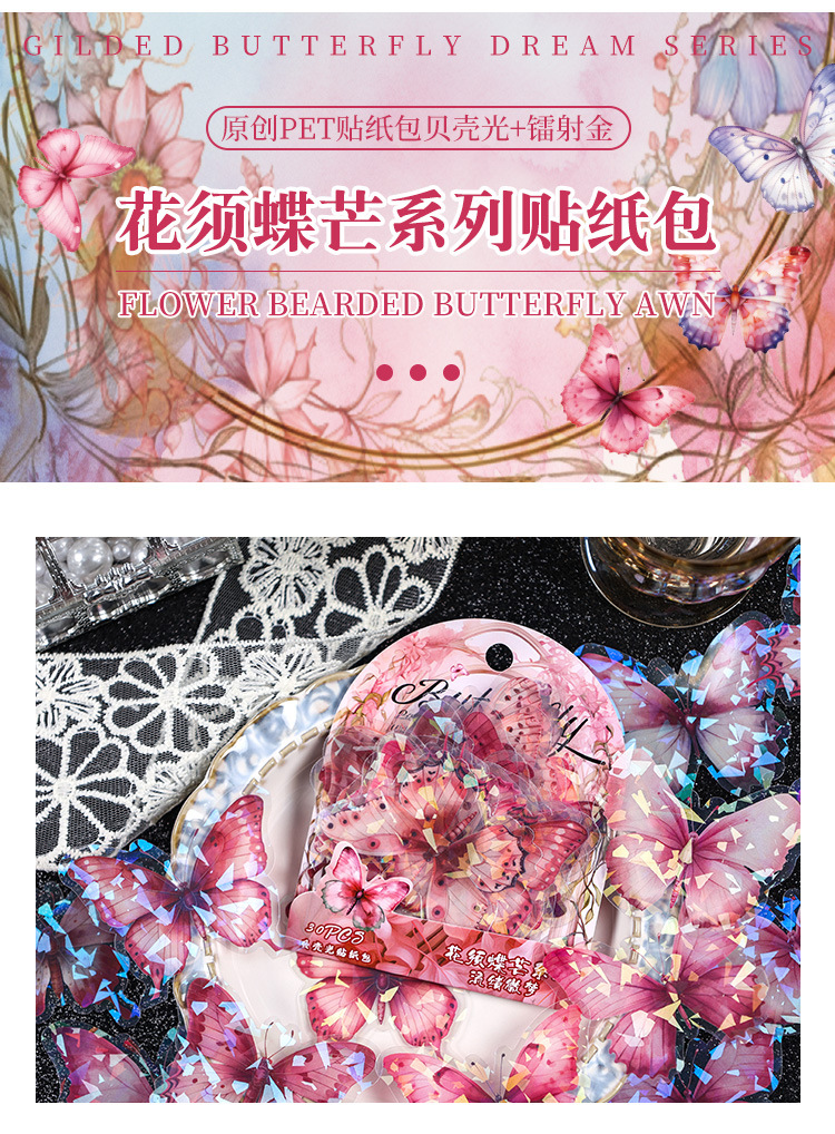 꽃 수염 나비 awm 쉘 라이트 레이저 방수 스티커 종이 가방 애완 동물 컷 필름 어린이 손 계정 스티커 diy 손 계정 소재 가방