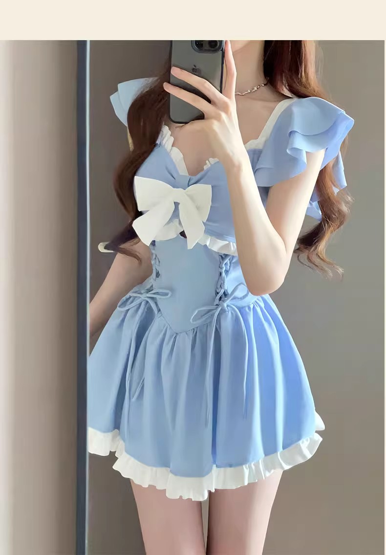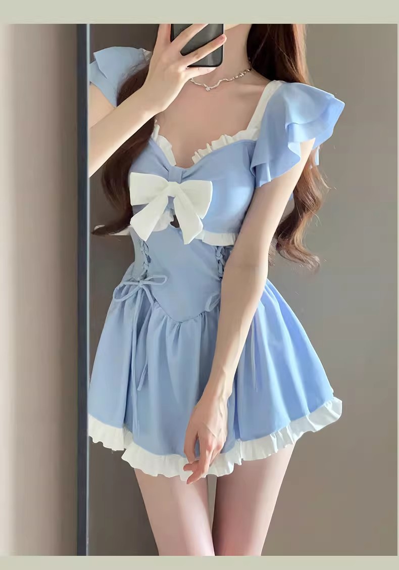 원피스 수영복 여성 2024 여름 최신 달콤한 활 공주 원피스 보수적 인 슬림 배꼽 커버 홀리데이 수영복스토어 가기